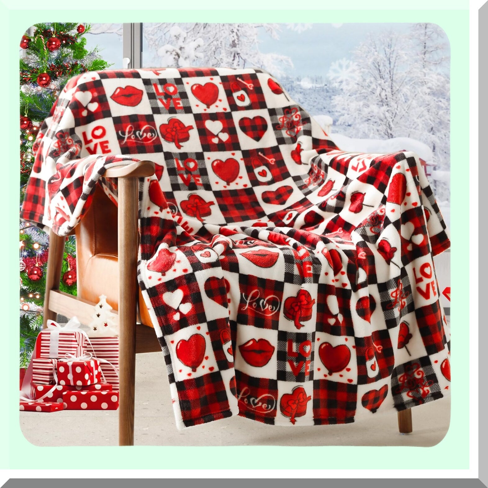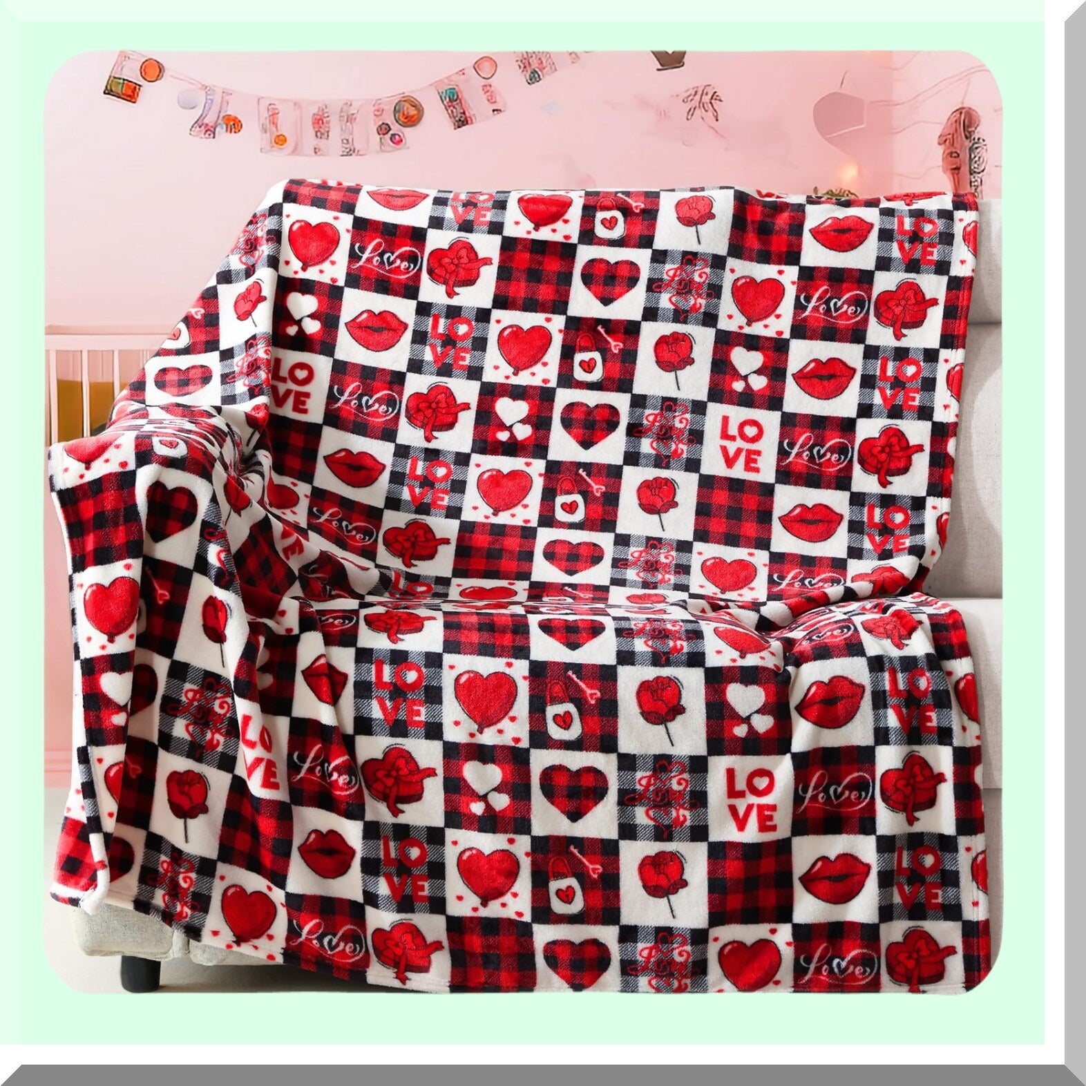 CozyHeart Red Plaid Sherpa Throw - Perfect Valentine's Gift for Mom, Wife, or Self - Decorative Blanket for Couch, Sofa, or Bed (50" x 60")"