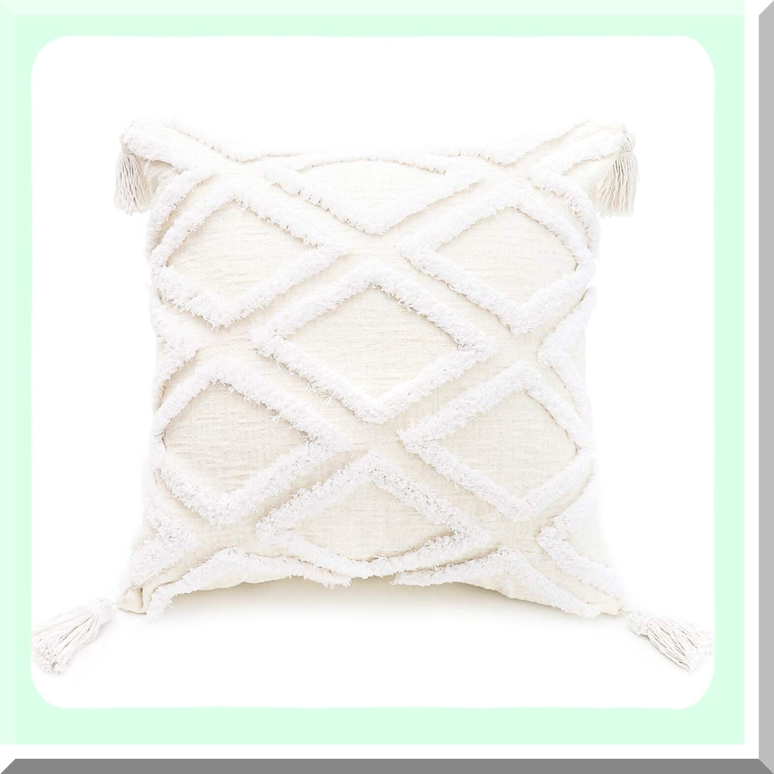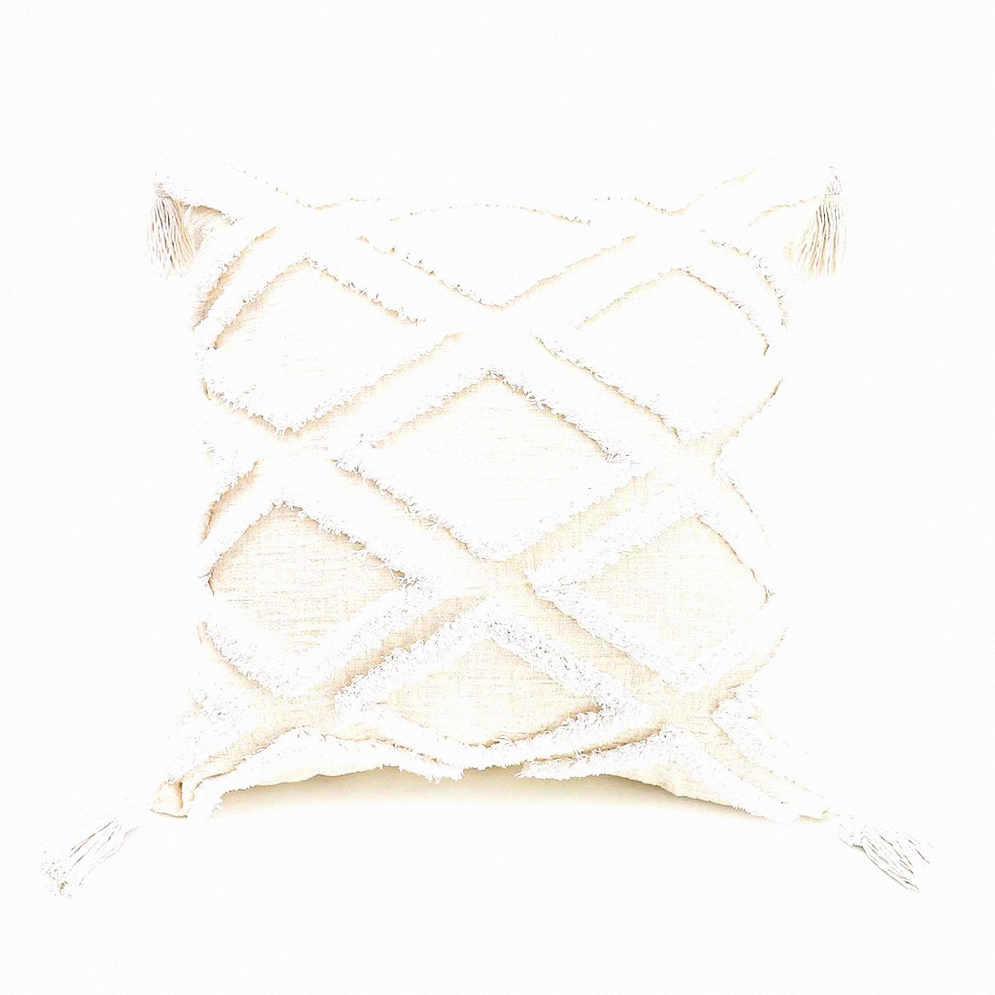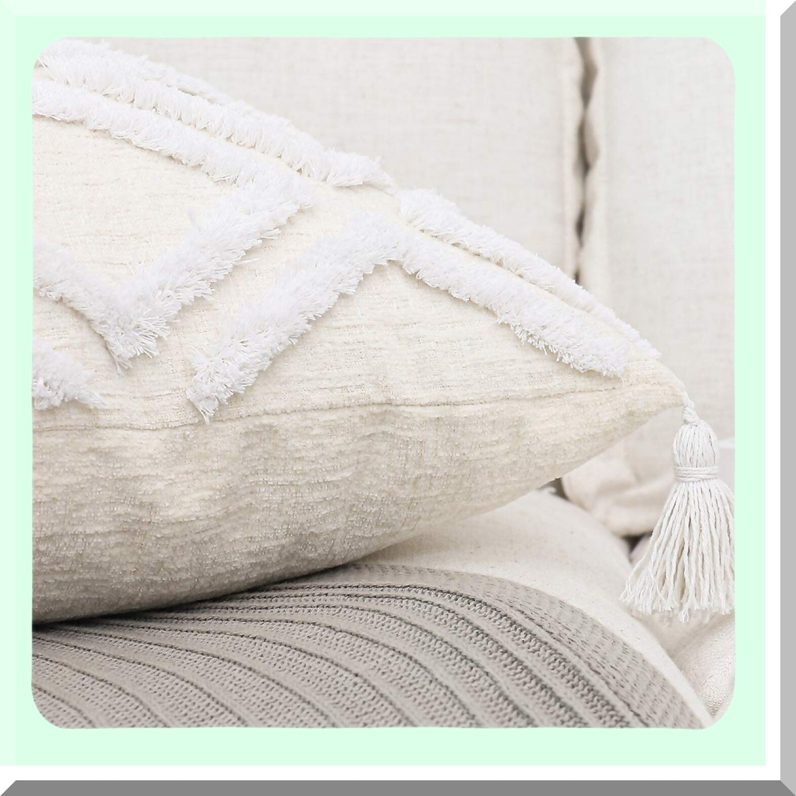 Moroccan Boho Cream Chenille Tufted Throw Pillow Cover - 20x20 Inch Tassel Accent Cushion Case for Bed Couch - Textured Decorative Fabric - 1 PC
