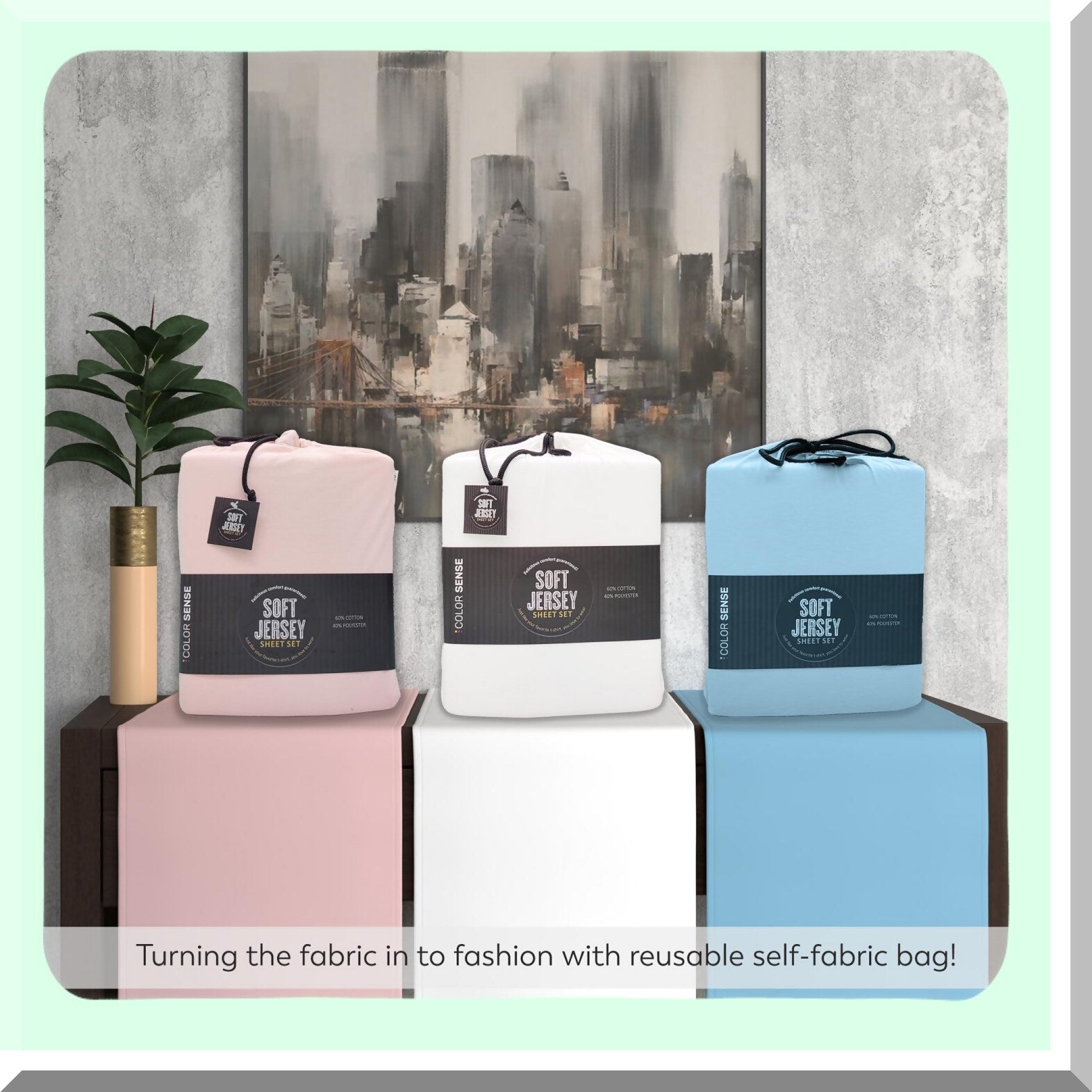 The practical benefits of the knitted sheets and pillowcases include a softer and cozier feel compared to woven sheets, providing enhanced comfort for a better sleep experience. The clic percale weave adds to the overall comfort, creating a sleep-on-cloud sensation every night. This can lead to improved sleep quality and overall well-being for the user.