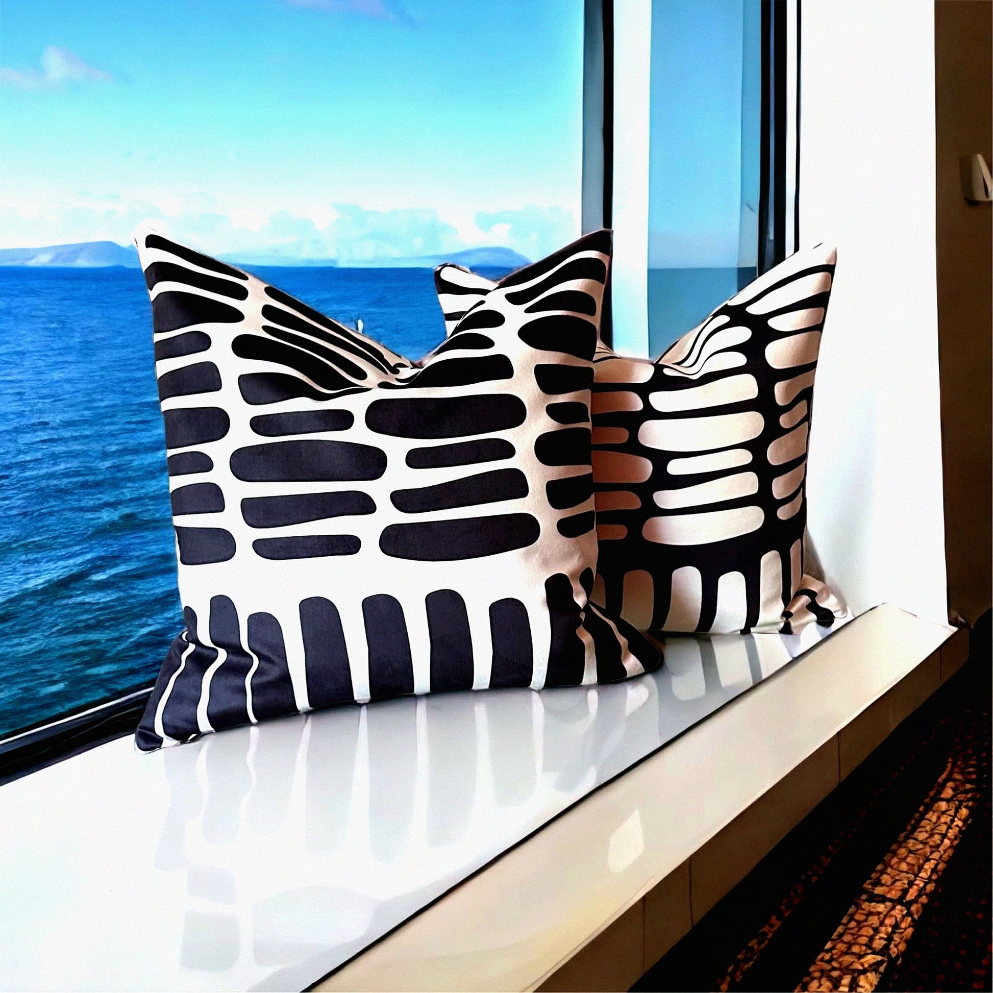 Boho Chic Velvet Throw Pillow Set - 18x18 Modern Abstract Cases - Textured Tufted & Printed Decorative Cushion Covers - Washable Indoor Outdoor Bedroom Couch Bed - Pack of 2