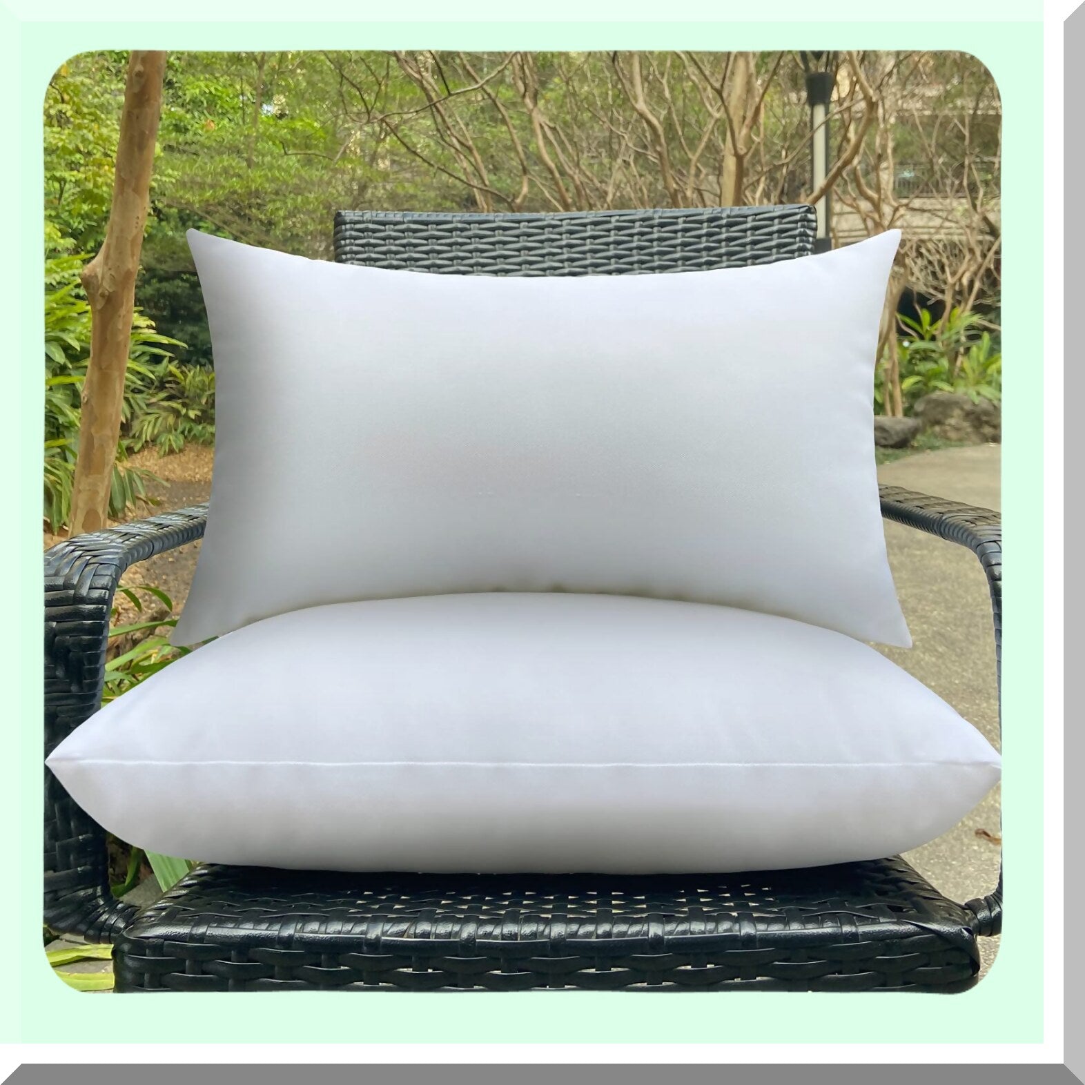 Waterproof Outdoor Lumbar Pillow Insert Set - Small White Rectangle Sofa Throw Cushion - Couch Decorative Pillow - 12 x 20 - Pack of 2