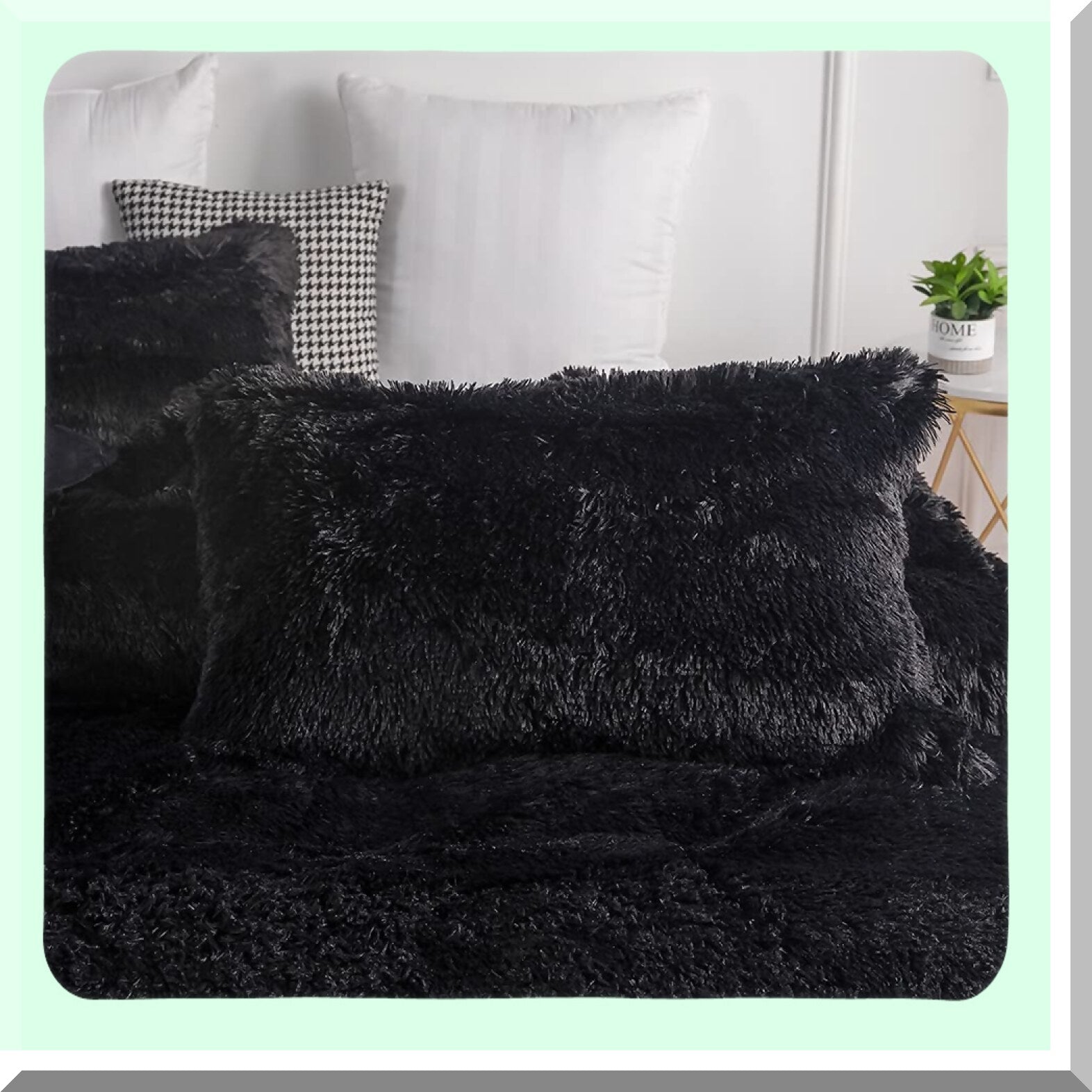 Luxury Plush Black Shaggy Comforter Set - Full/Queen Size Ultra Soft Flannel Velvet Bedding with Fluffy Fuzzy Texture - Includes 1 Comforter and 2 Pillowcases
