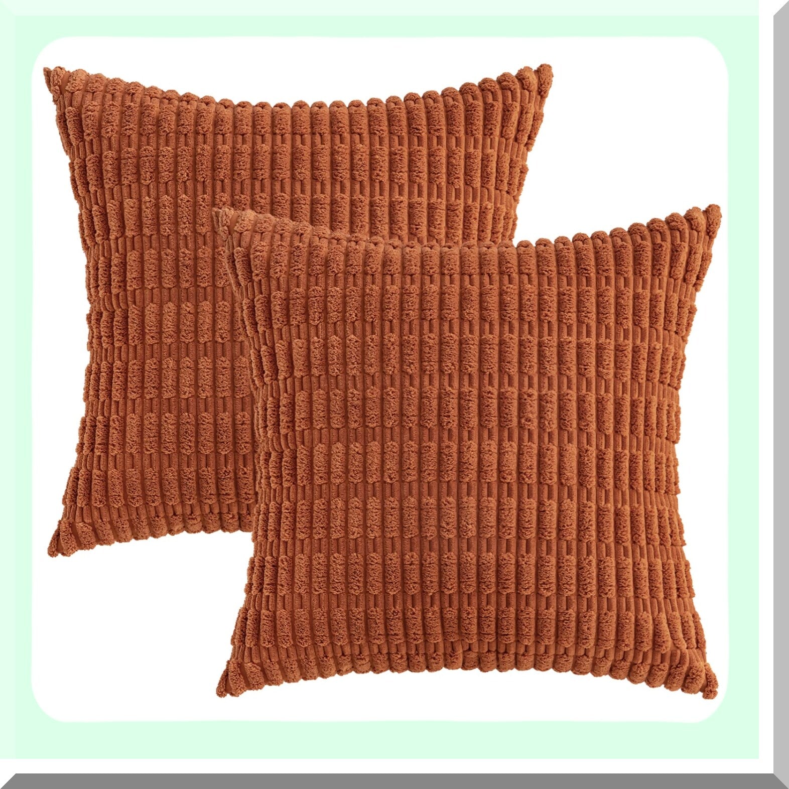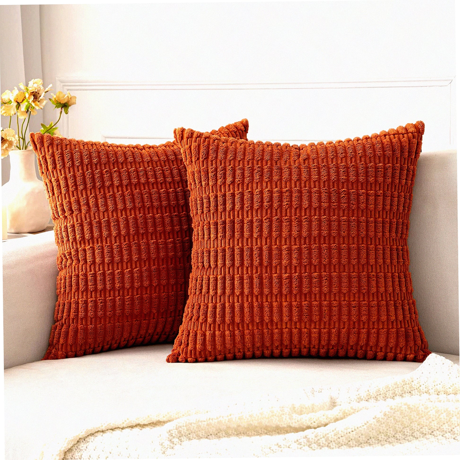 Boho Stripe Corduroy Pillow Covers - Set of 2 | Soft 18x18 Inch Decorative Throw Pillow Cases | Modern Farmhouse Home Decor for Living Room, Couch, Bed | Rust Color Palette