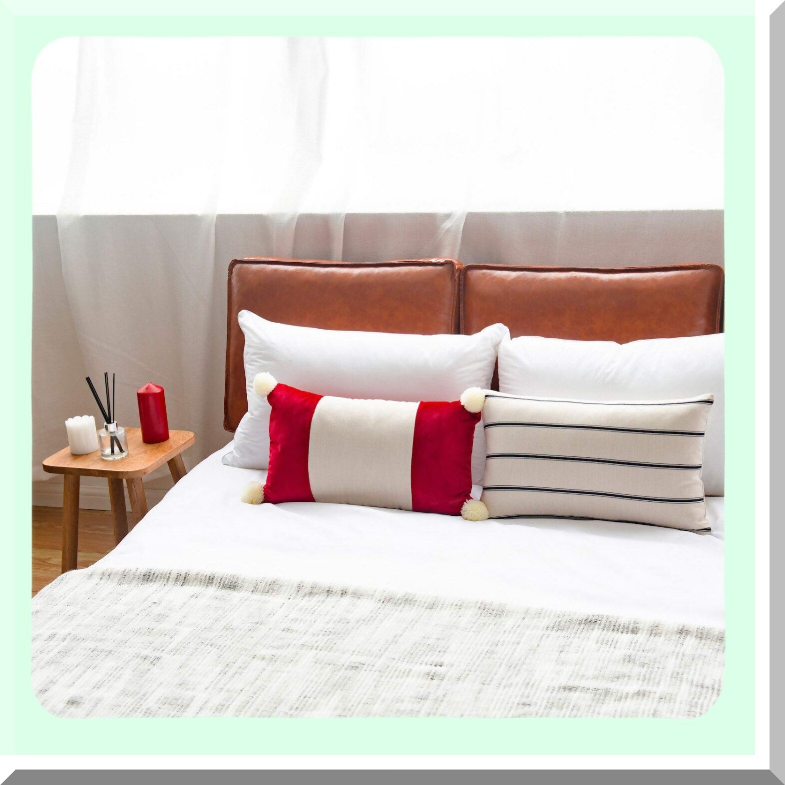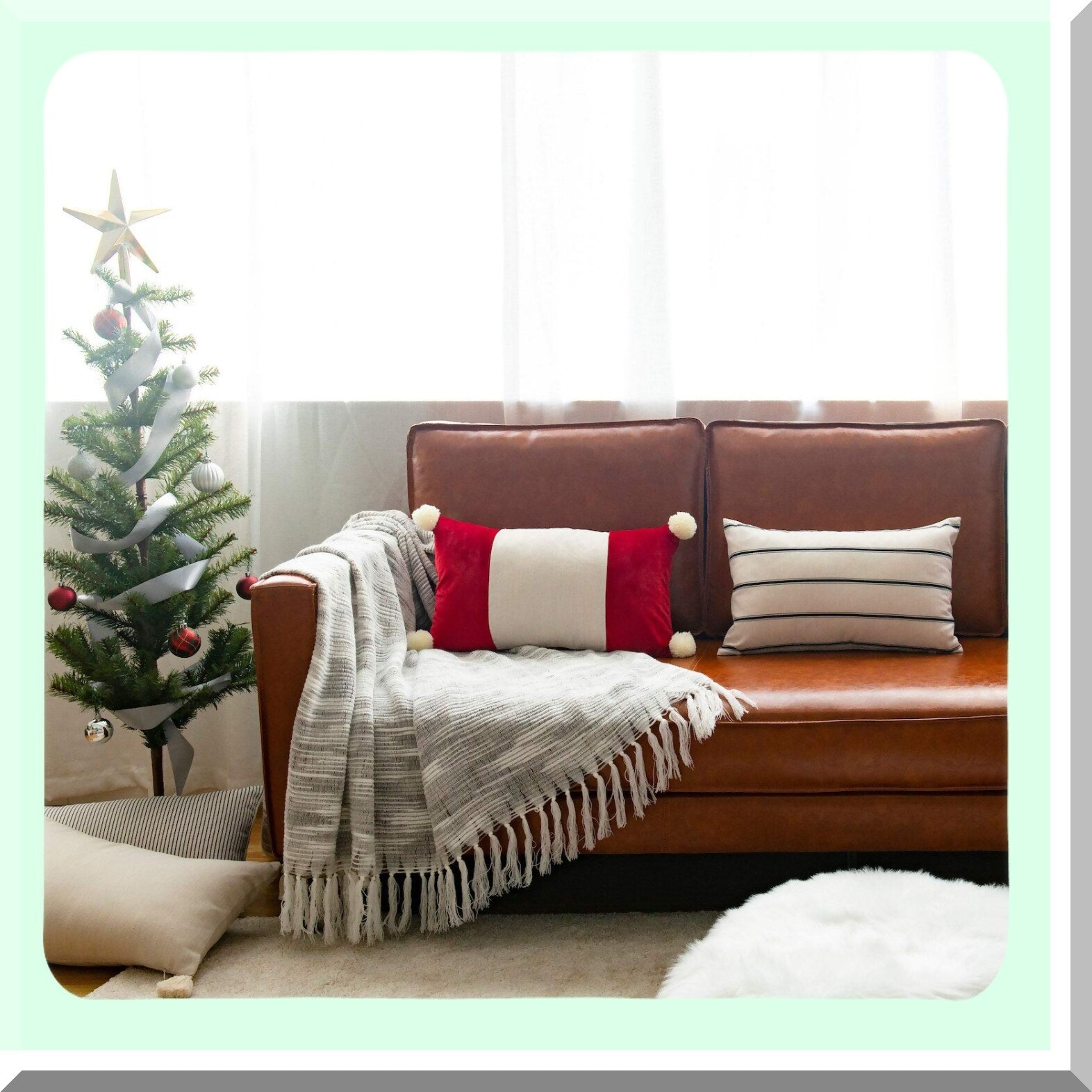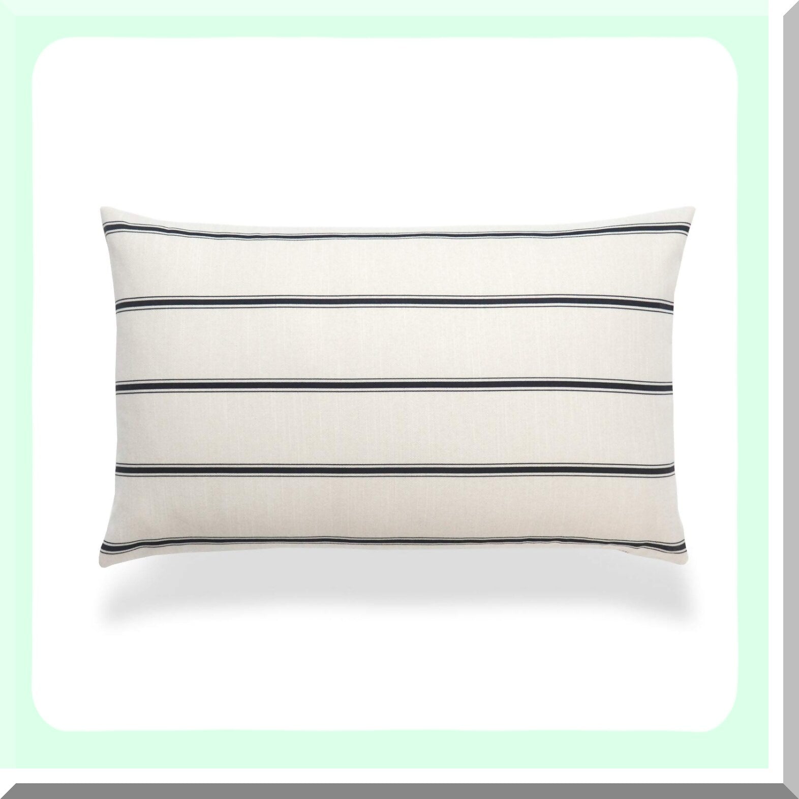 Striped Neutral Lumbar Pillow Cover - Mid Century Decor, Black Beige 12"x20"