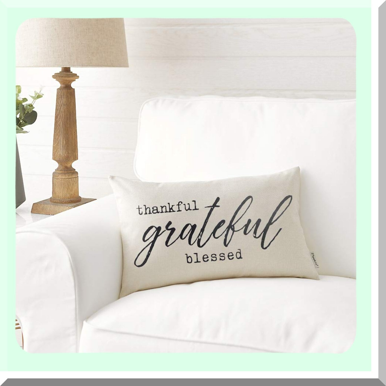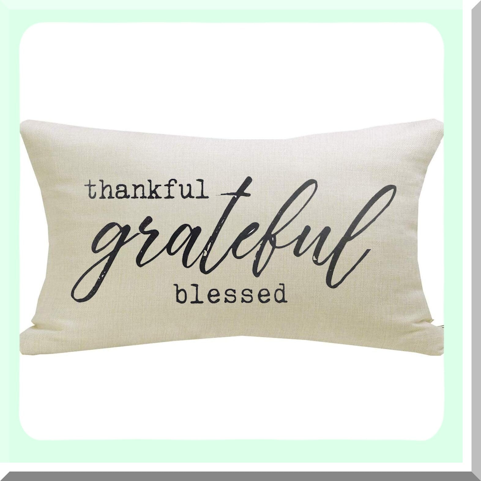 Thankful Grateful Blessed Farmhouse Lumbar Pillow - Rustic Dcor Quote Cover for Housewarming Gifts & Family Room Dcor - 12" x 20"