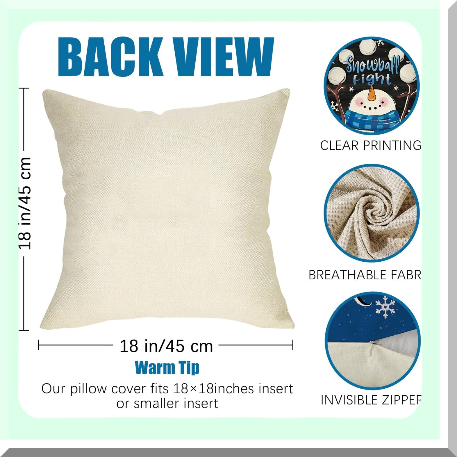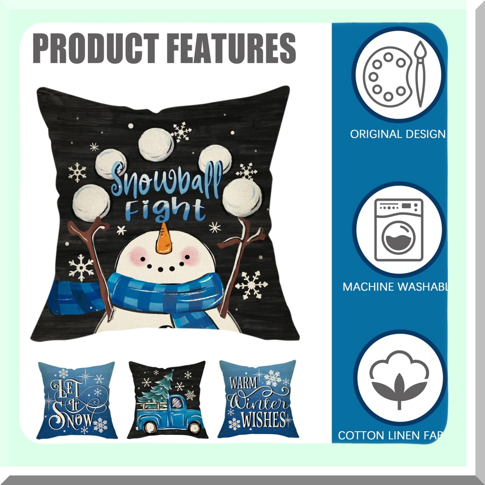 Winter Wonderland Snowflake Farmhouse Pillow Covers 18x18 Set of 4 - Snowman Truck Tree Blue Black Outdoor Pillowcase - Let It Snow Holiday Cushion Case Home Decor