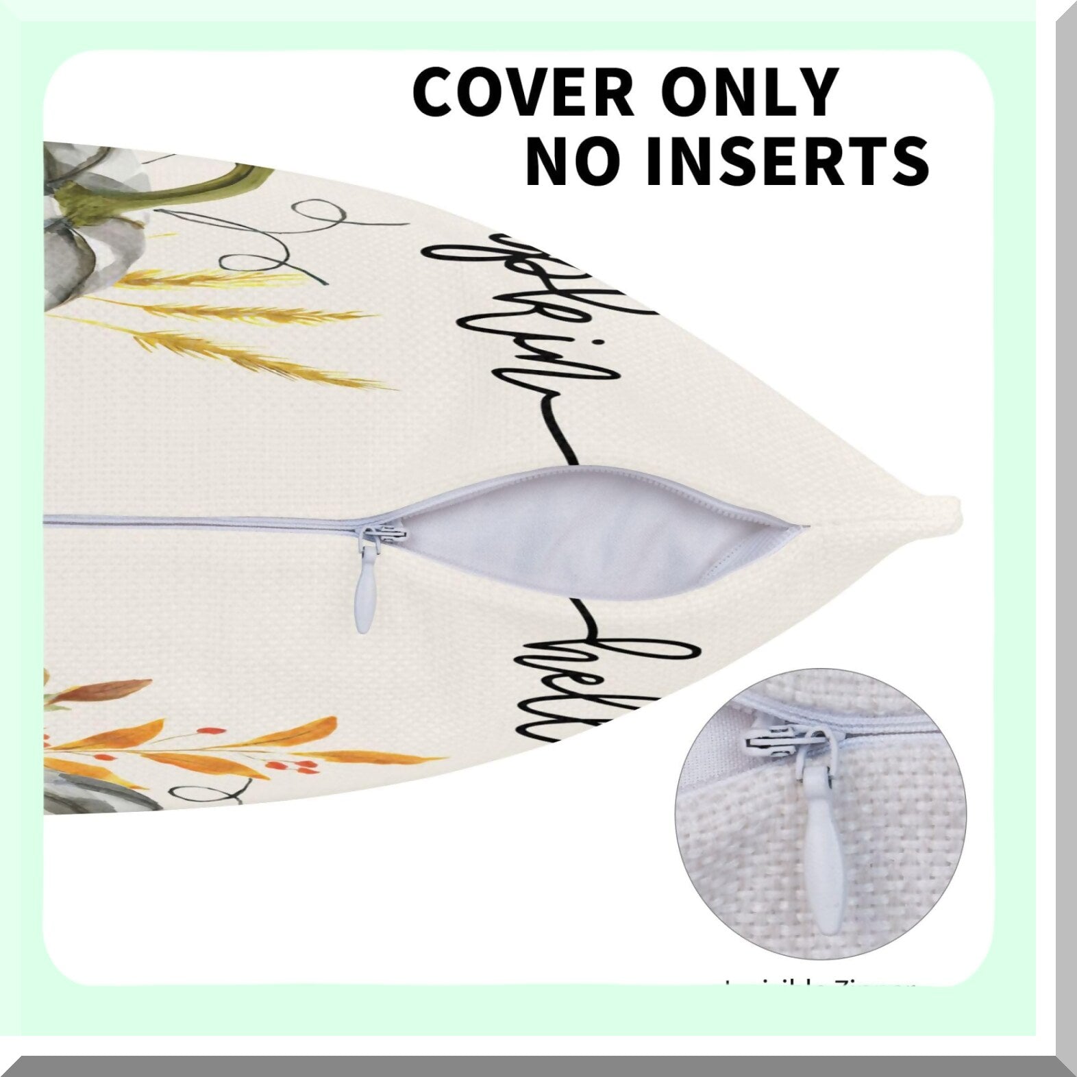 Autumn Harvest Buffalo Plaid Pillow Covers - Set of 2 18x18 Pumpkin Linen Farmhouse Decor Cushion Case for Home Sofa & Bedroom