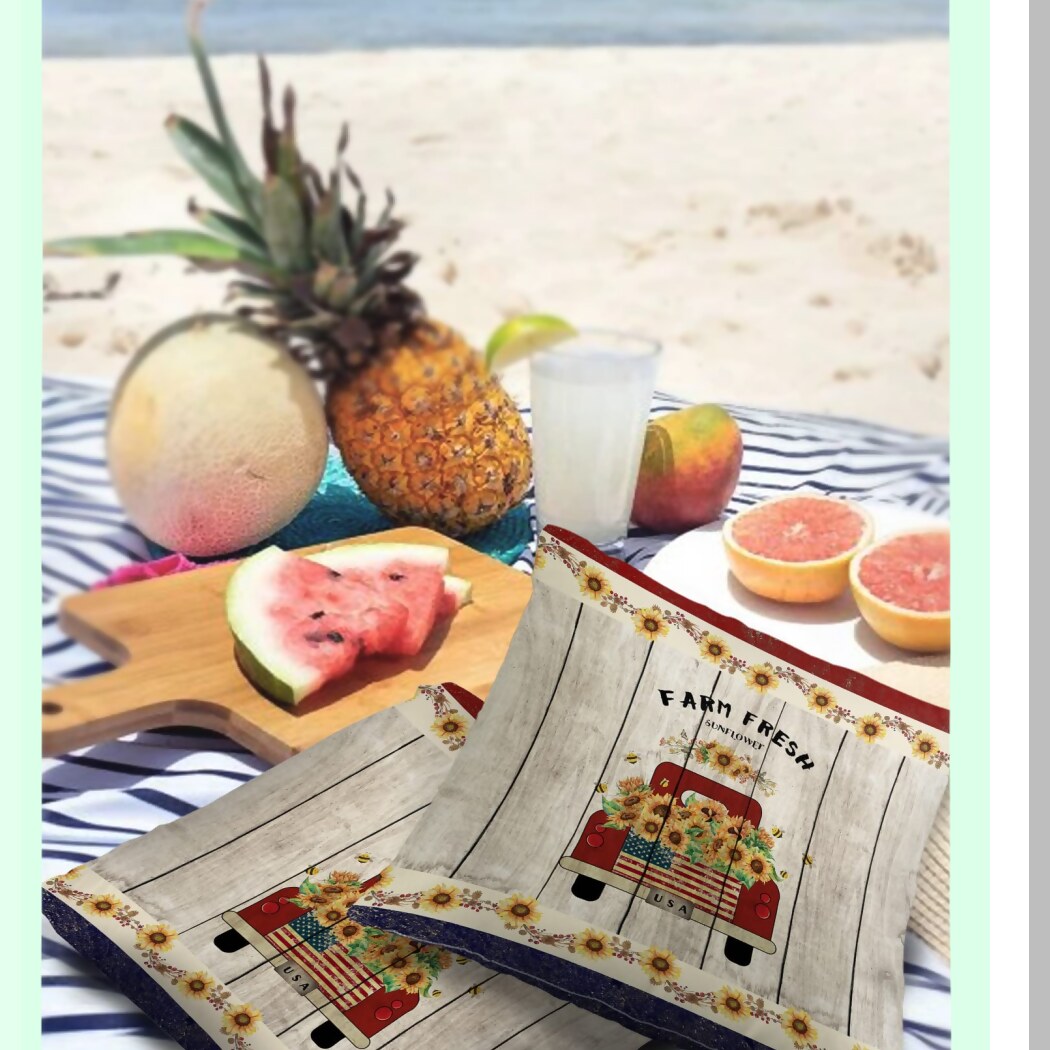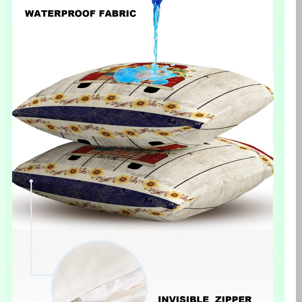Retro Farm Truck Sunflower Outdoor Pillow Covers - Set of 2 | Waterproof Throw Pillowcase | Red Blue Cotton Linen Cushion Cover - 16x16In | July 4th Decor