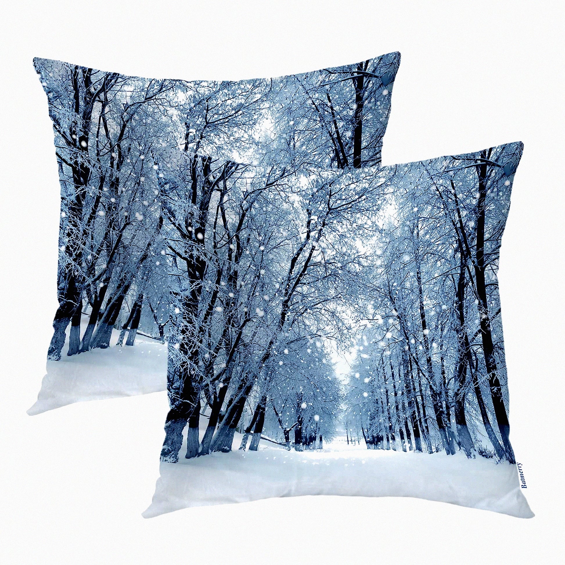 Snowstorm Park Winter Landscape Pillow Covers - Set of 2, 18x18 Inch Blue Snow Double Sided Decorative Throw Cases