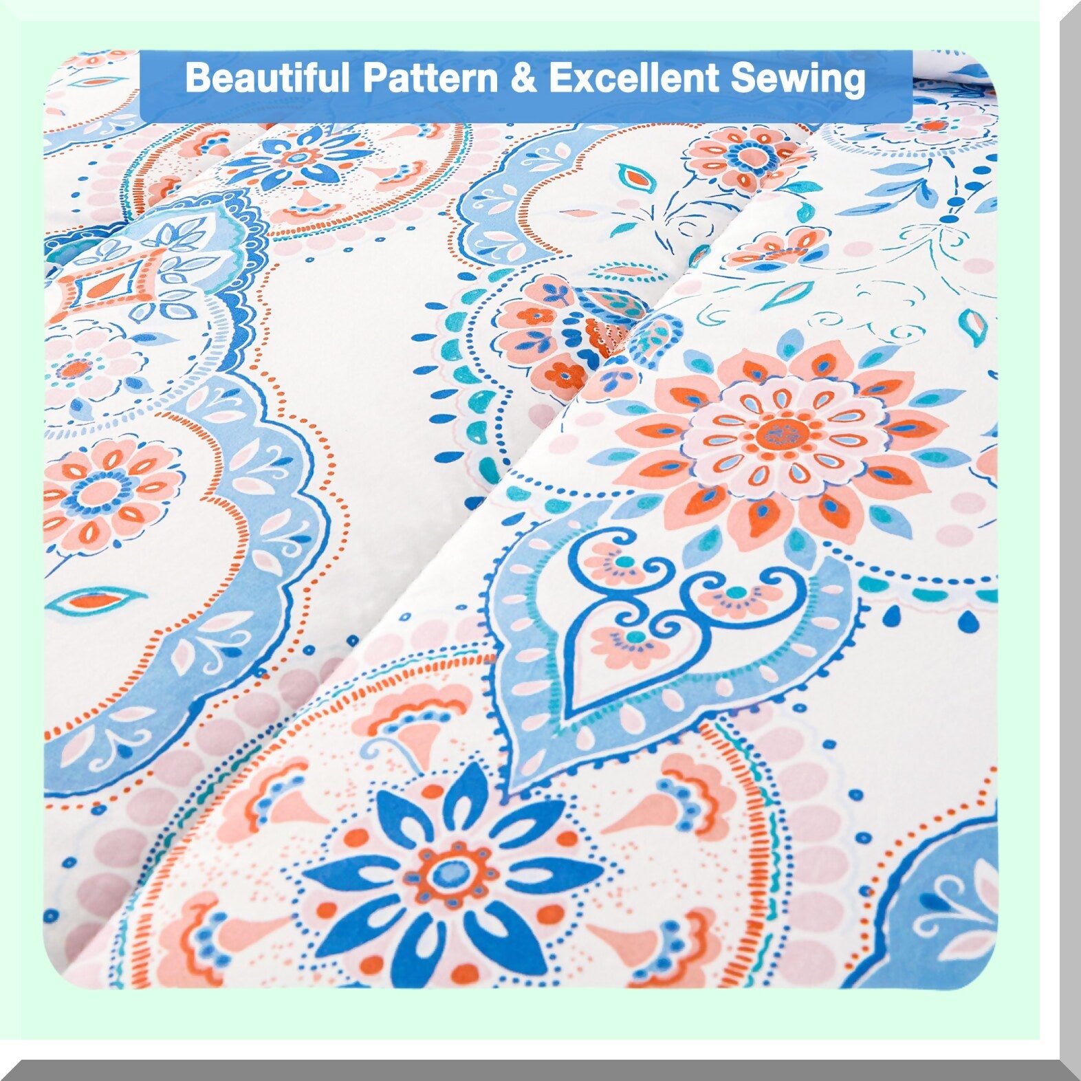 Boho Bloom Queen Bedding Set - 7 Piece Floral Comforter & Sheets, Lightweight Bed in A Bag for Women, Pink & Blue Flower Pattern - Cozy Chic Home Decor