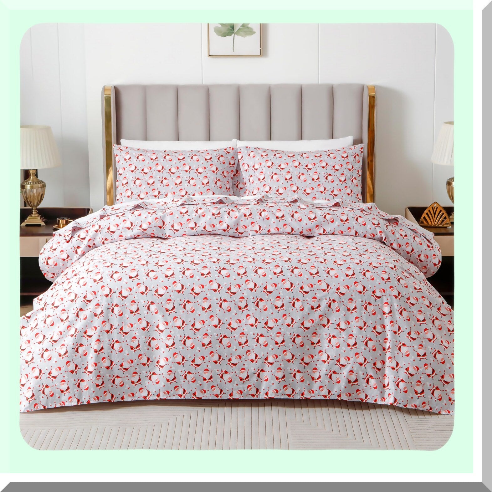 JollyCozy Holiday Flannel Sheet Set - Ultra Soft 100% Cotton, Anti-Pill, Deep Pocket Fitted Sheet - Warm & Premium Quality - 4-Piece