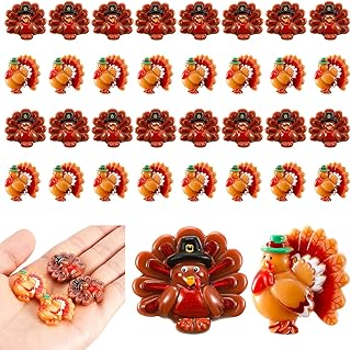 This set includes 60 turkey-shaped charms designed for craft projects. Made from resin, these flatback embellishments are suitable for decorating hairpins, accessories, and various DIY crafts. They are ideal for adding a festive touch to Thanksgiving-themed decorations and craft creations.