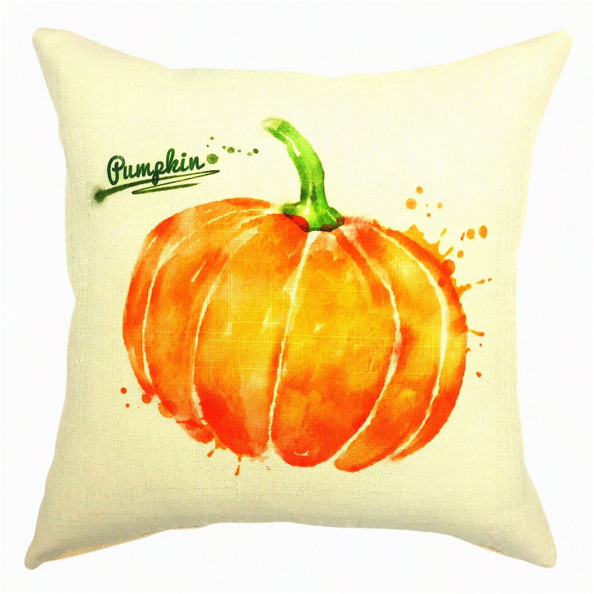 Autumn Harvest Linen Cotton Pumpkin Throw Pillow Cover - Fall Decorative Cushion Case 18x18 Square