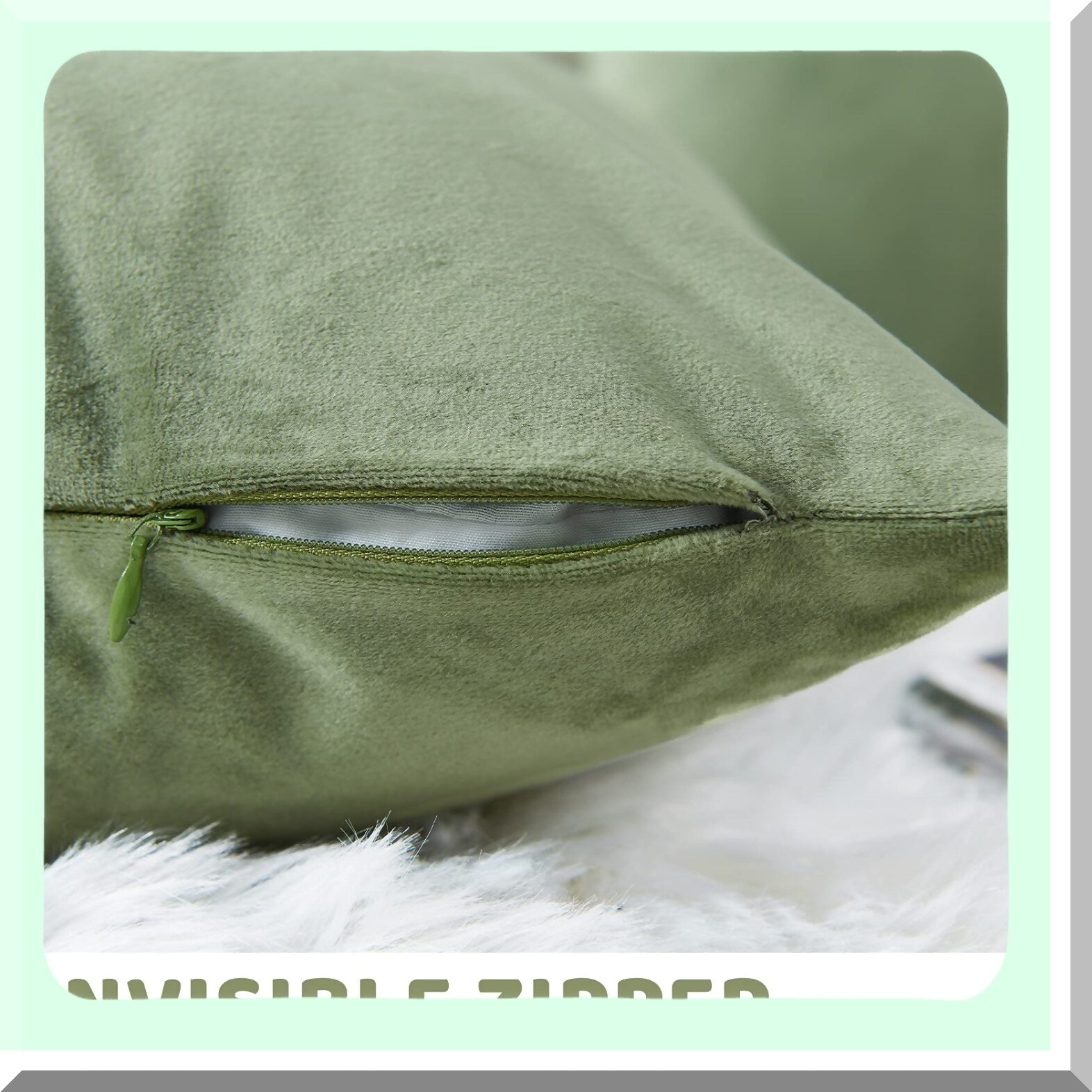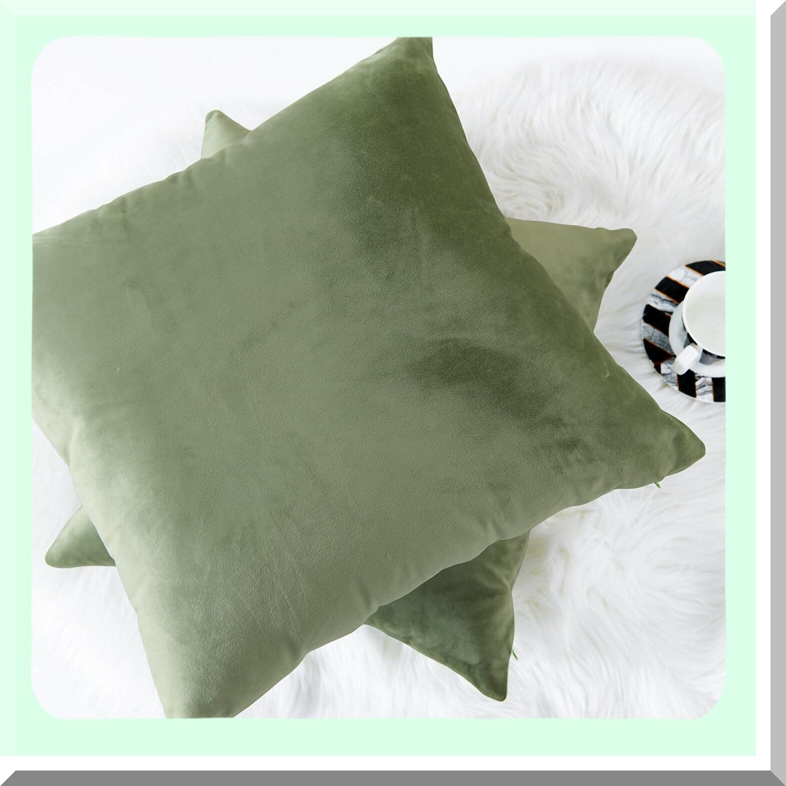 Sage Green Velvet Cushion Cover - Soft Decorative Pillowcase for Couch, Bed, Sofa & Chair - Solid Square 18x18 - Plush Throw Pillow Case