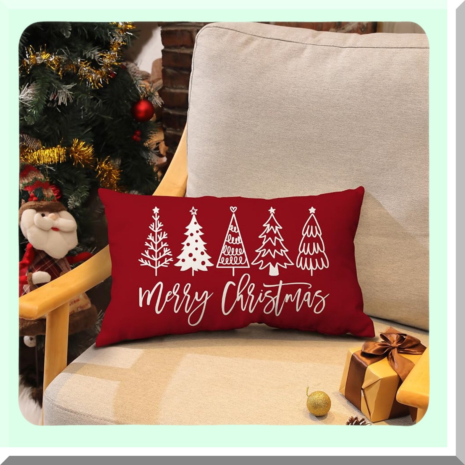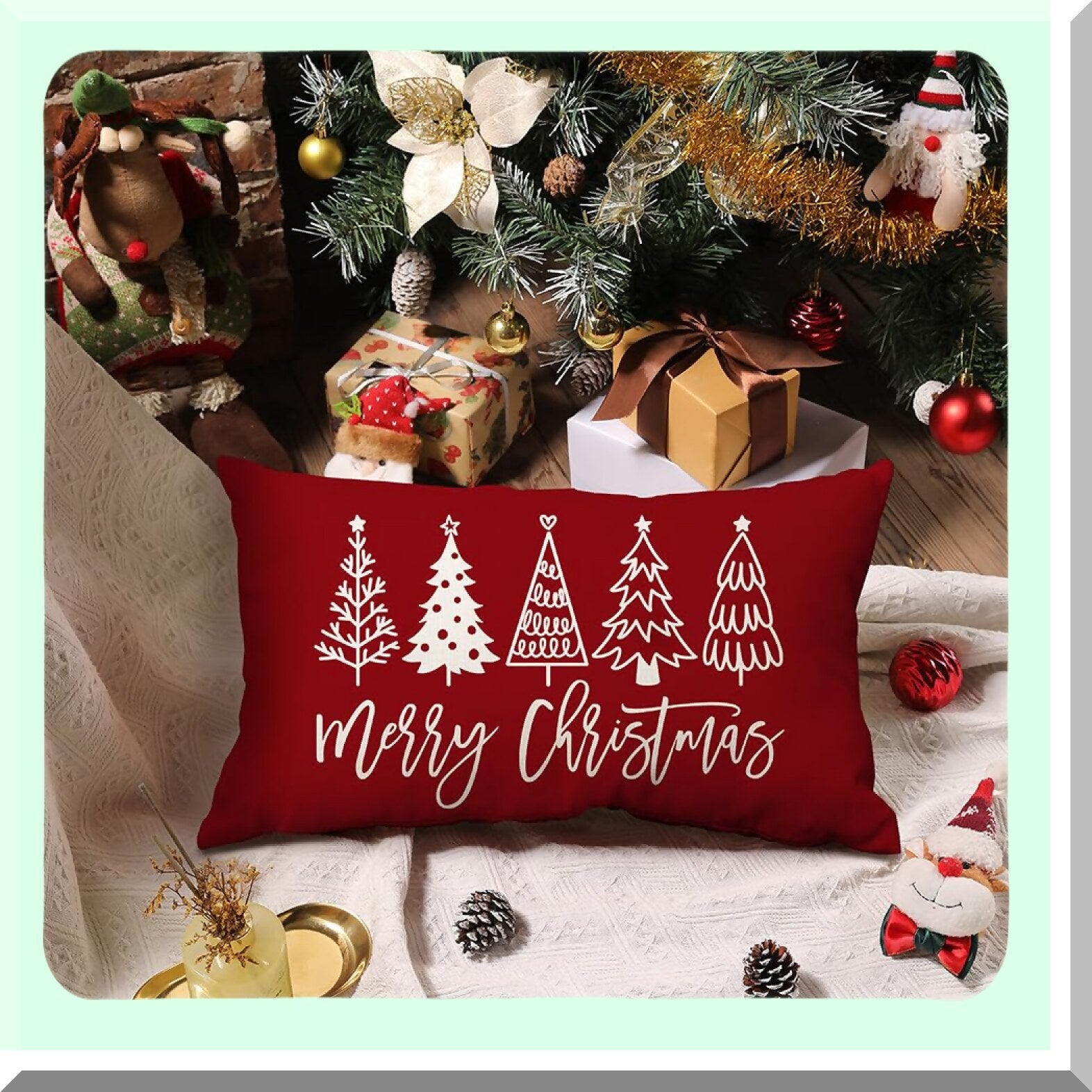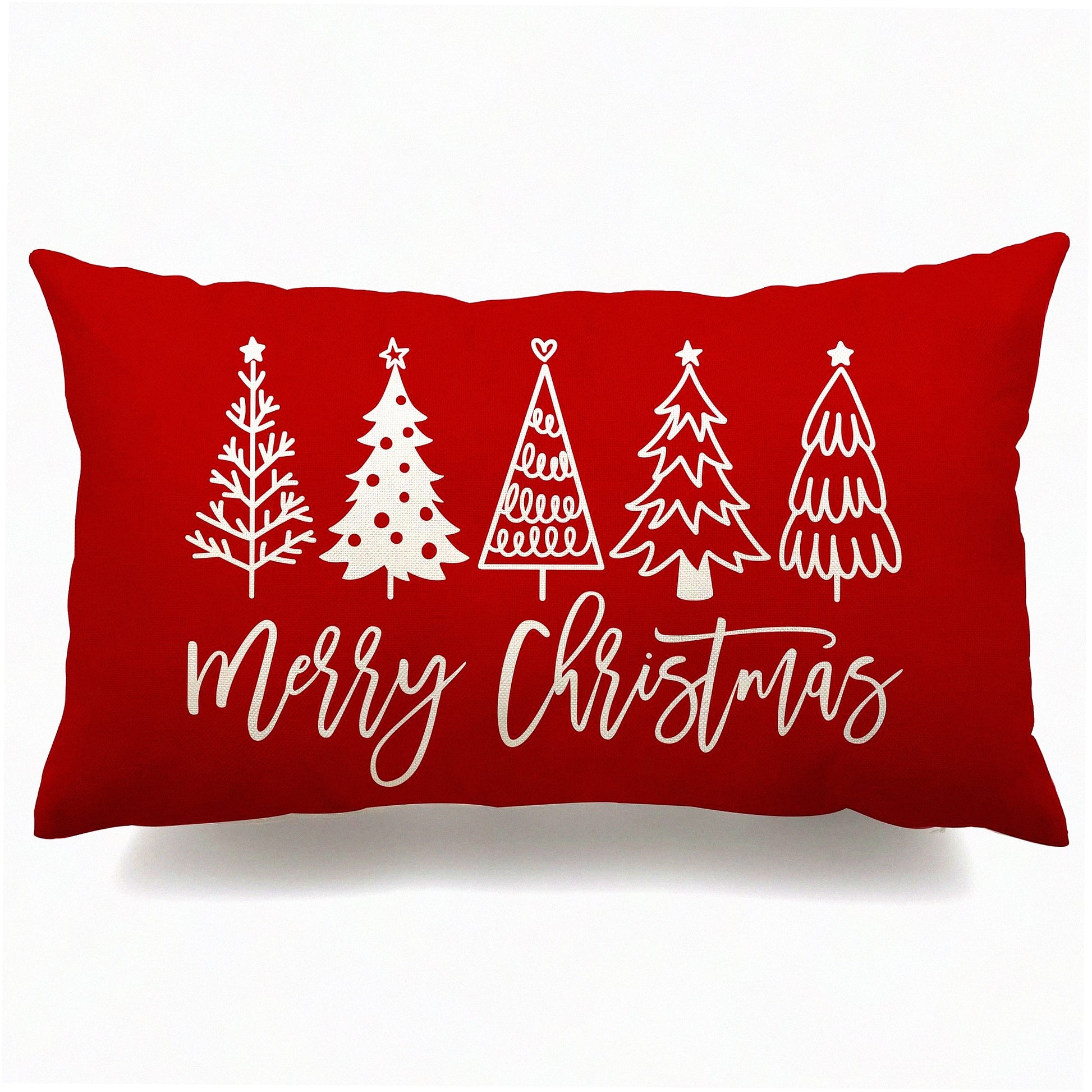 Winter Wonderland Tree Pillow Covers - Festive 12x20 Inch Red Throw Pillows for Home Decor, Cozy Couch Accessories - Style 143B