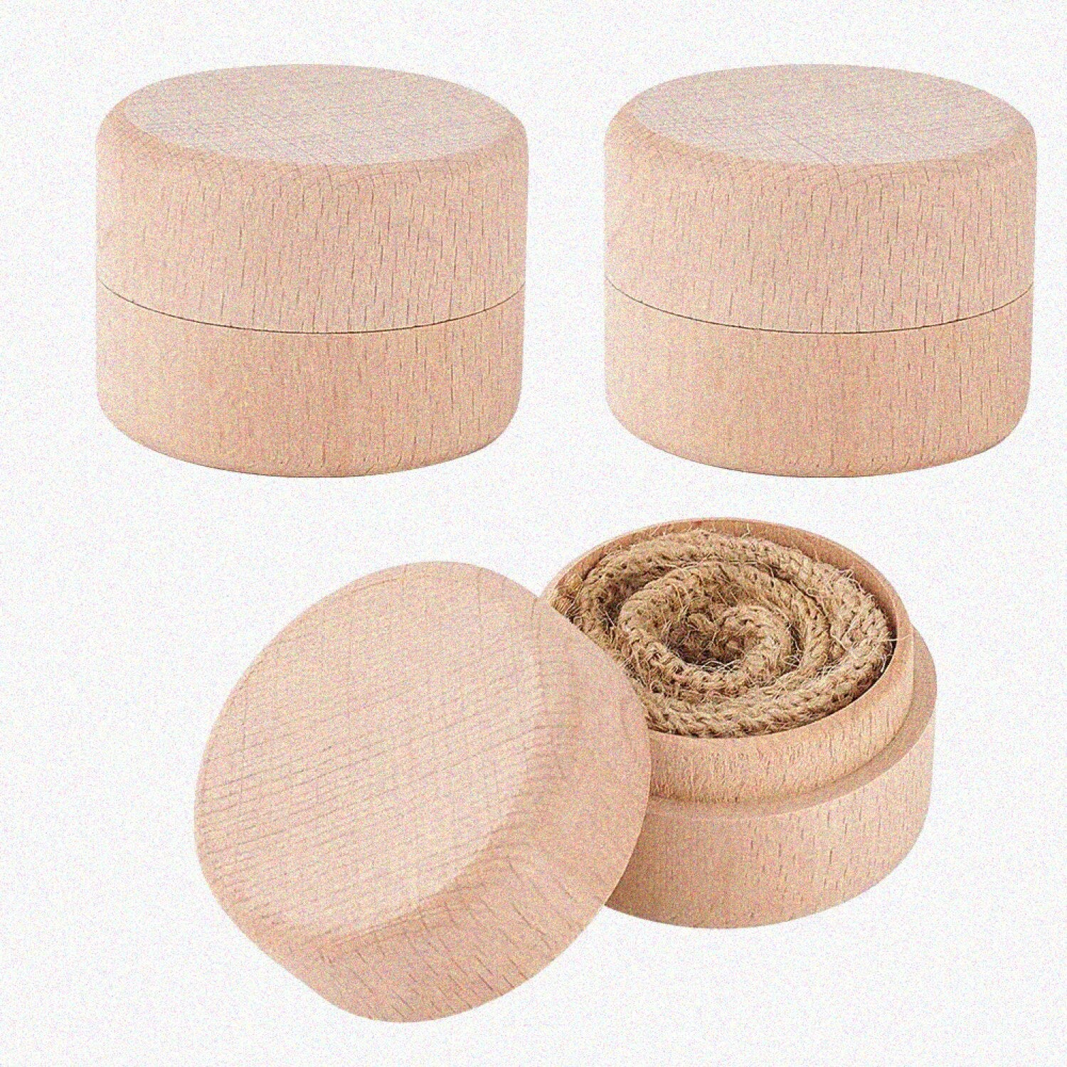 This set includes three mini round wooden boxes, each measuring approximately 1.89 inches in diameter and 1.38 inches high, with an inner diameter of about 1.48 inches. Crafted from durable wood in a natural burly wood color, these boxes are ideal for storing and displaying jewelry and small trinkets. They are perfect for organizing rings, earrings, necklaces, brooches, hair clips, and more. The compact size makes them suitable for various uses, including proposals, weddings, or everyday storage. Their sturdy construction ensures long-lasting use, while their simple, elegant design adds a touch of natural charm to any setting. Whether for personal organization or as a thoughtful gift, these small wooden boxes provide a practical and attractive solution for keeping your favorite items safe and stylishly displayed.