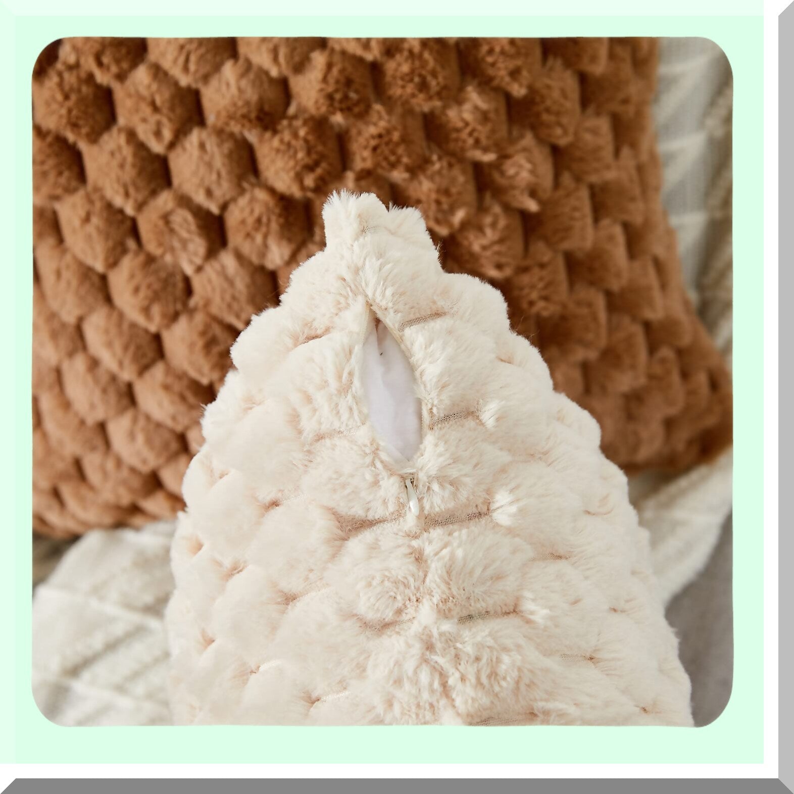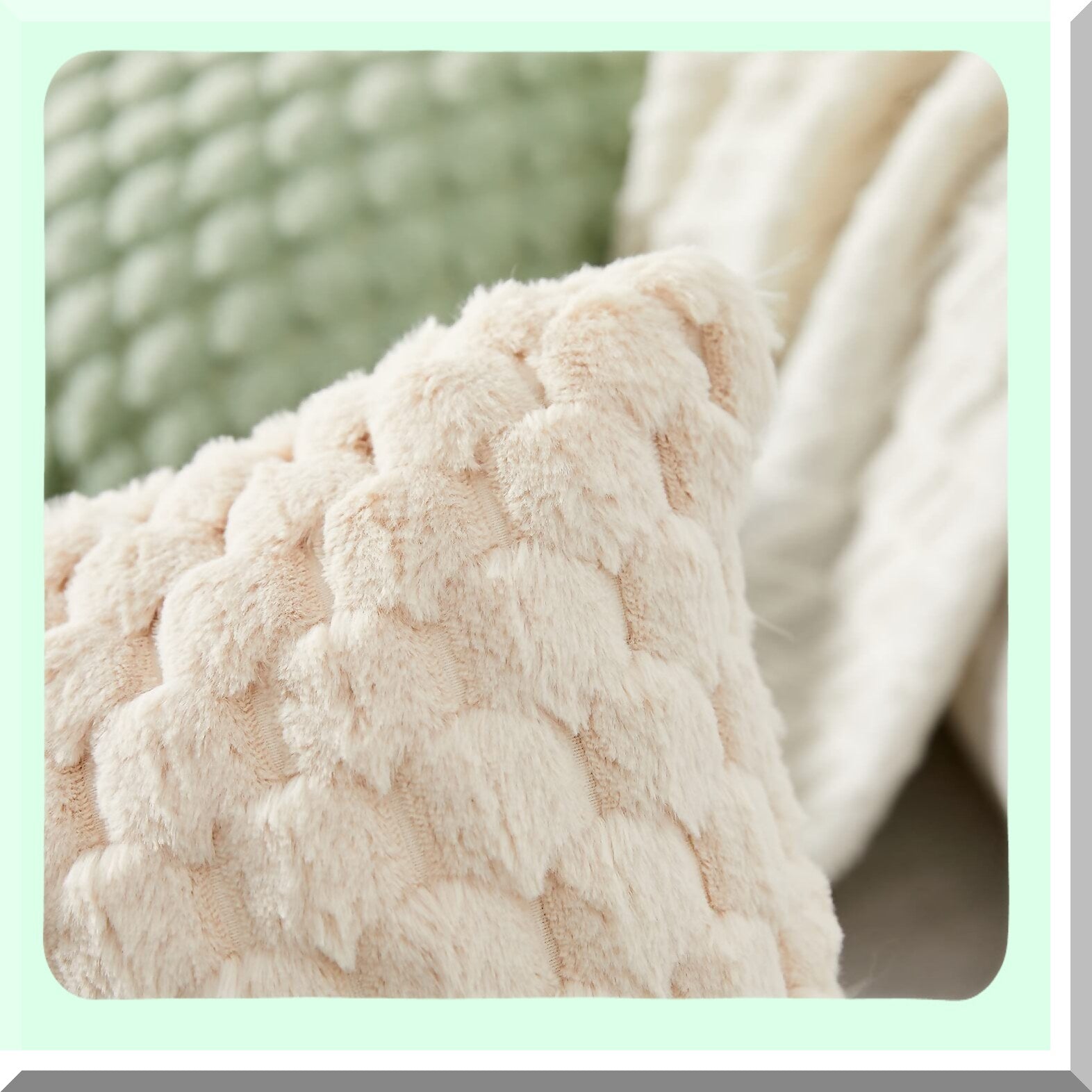 Luxury Plush Cozy Throw Pillow Covers - Set of 2 Soft Fuzzy Cushion Cover for Sofa Couch Bed - Decorative Pillowcase 20x20 Inch Beige