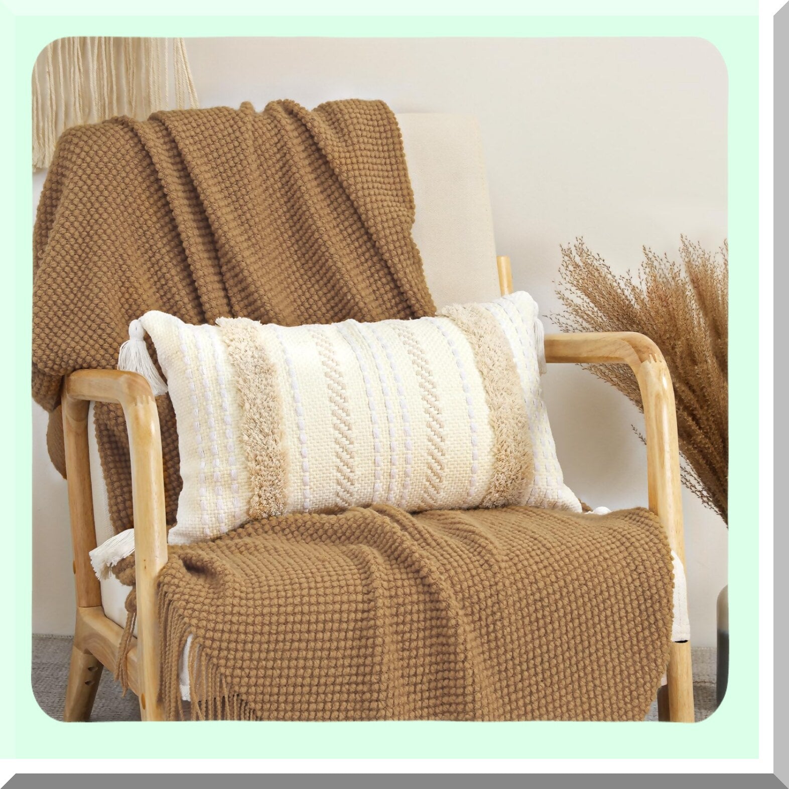 Tufted Farmhouse Lumbar Pillow Cover - Modern Boho Decorative Throw Pillow Case for Couch Bed Home - Small Neutral Accent Cream White 12x20"