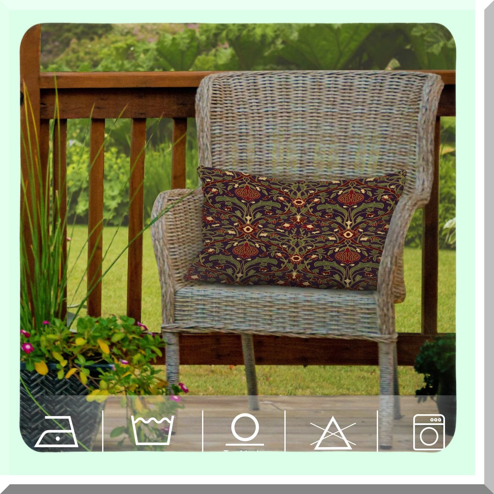 Vintage Floral Tapestry Lumbar Pillow Covers - Set of 2, Burgundy Garnet Decorative Throw Cushion for Sofa, Bedroom, Car - 12 x 20 Inches Cotton