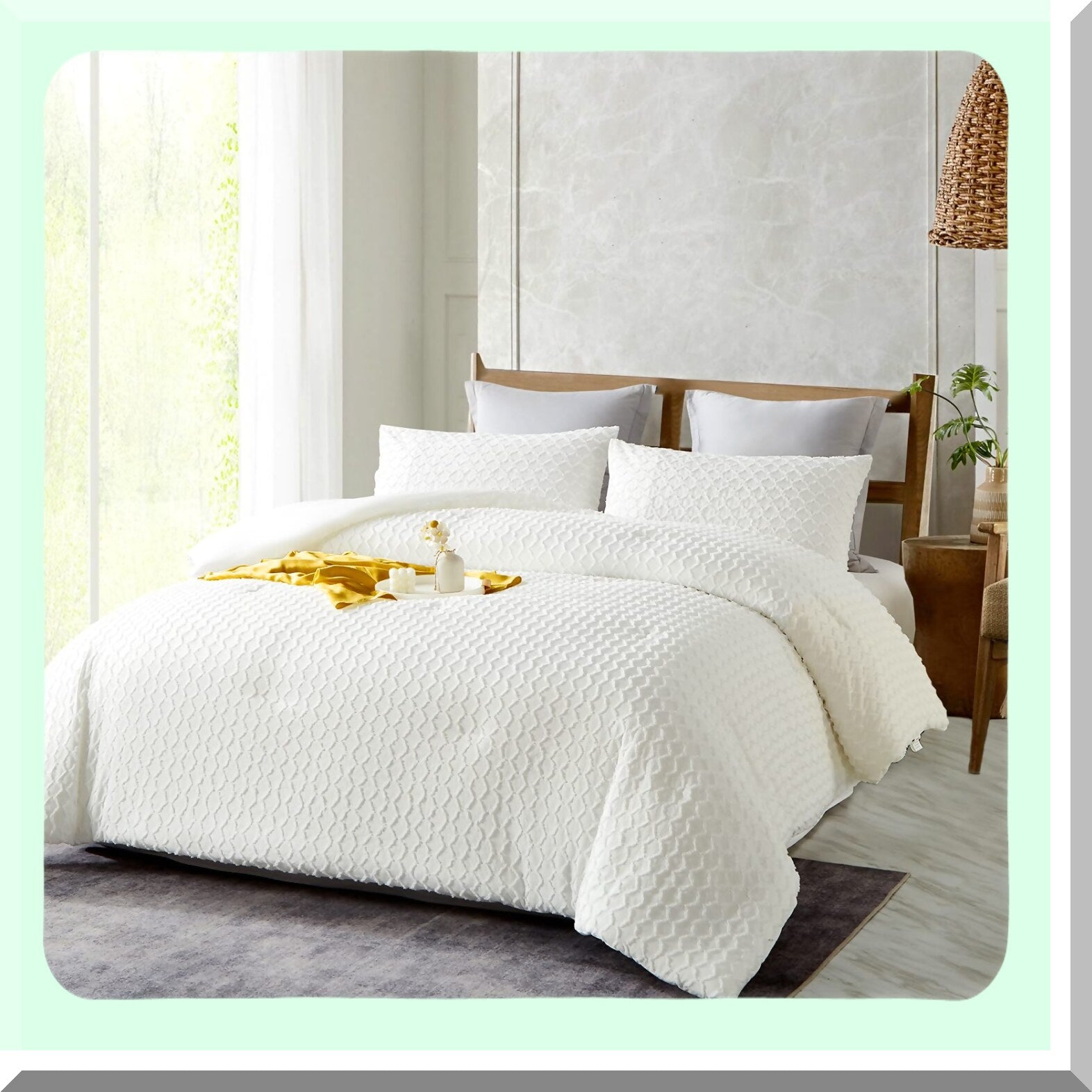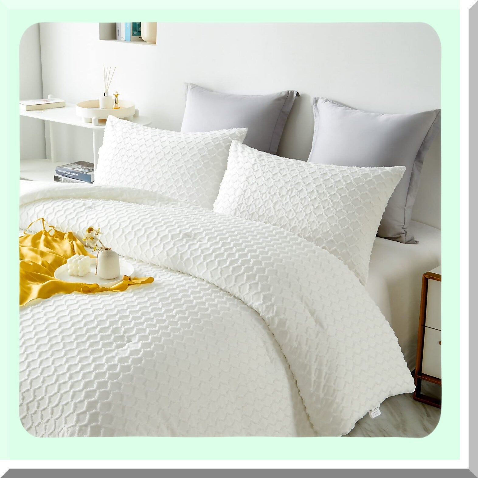 FluffyDreams White Boho Comforter Set - Lightweight 3PCS Tufted Design Bedding for All Seasons - Size Comforter Sets for Ultimate Comfort and Style