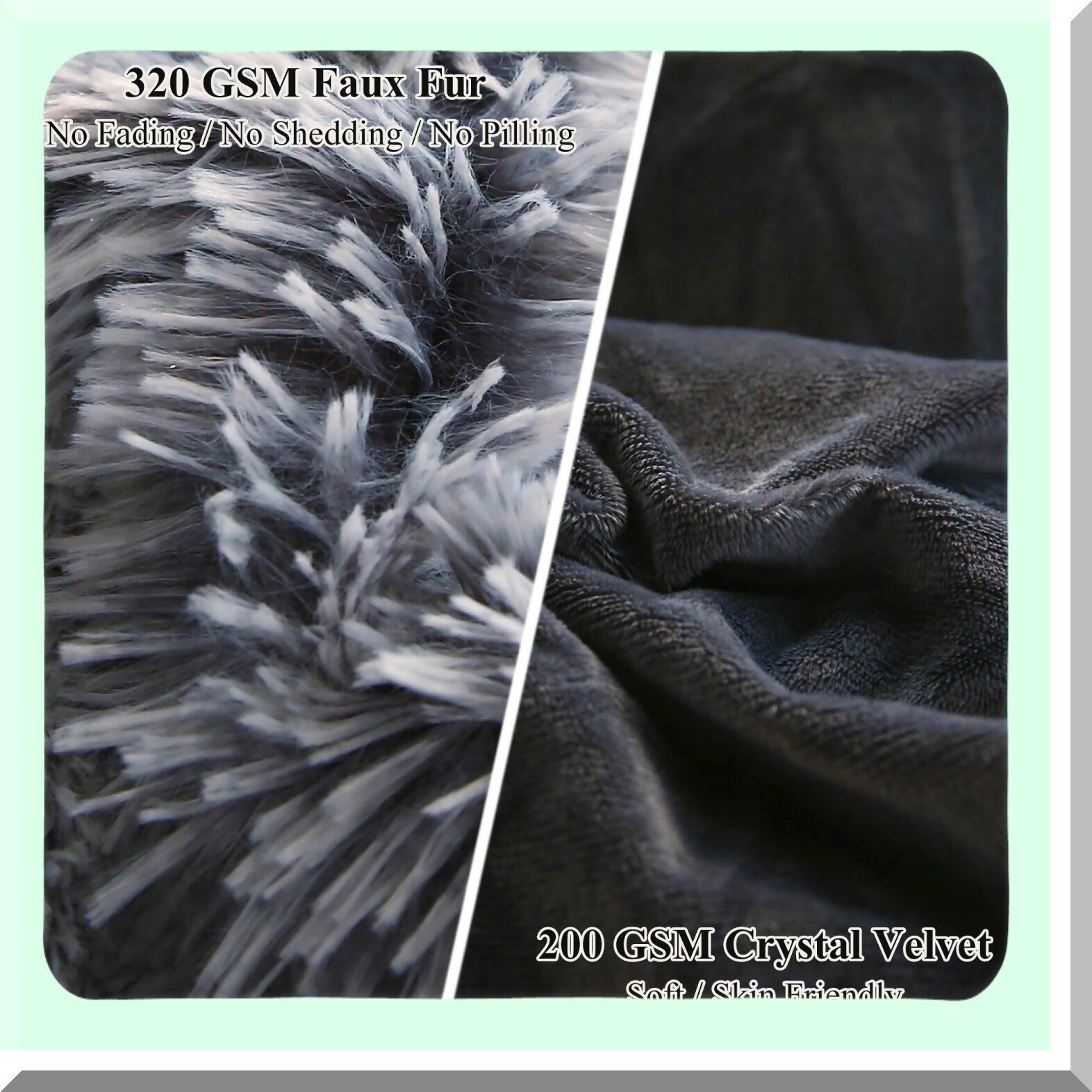 The material, made of 100% polyester shaggy microfiber plush on the front and ultra-soft crystal velvet mink on the reverse, offers several practical benefits. It provides exceptional softness and comfort, making it ideal for cozying up in various settings. The plush texture on the front adds a luxurious feel, while the velvet mink on the reverse enhances the overall softness. This combination ensures a warm and inviting experience for users. Additionally, the durable polyester construction ensures longevity and easy maintenance, making it a practical choice for everyday use.