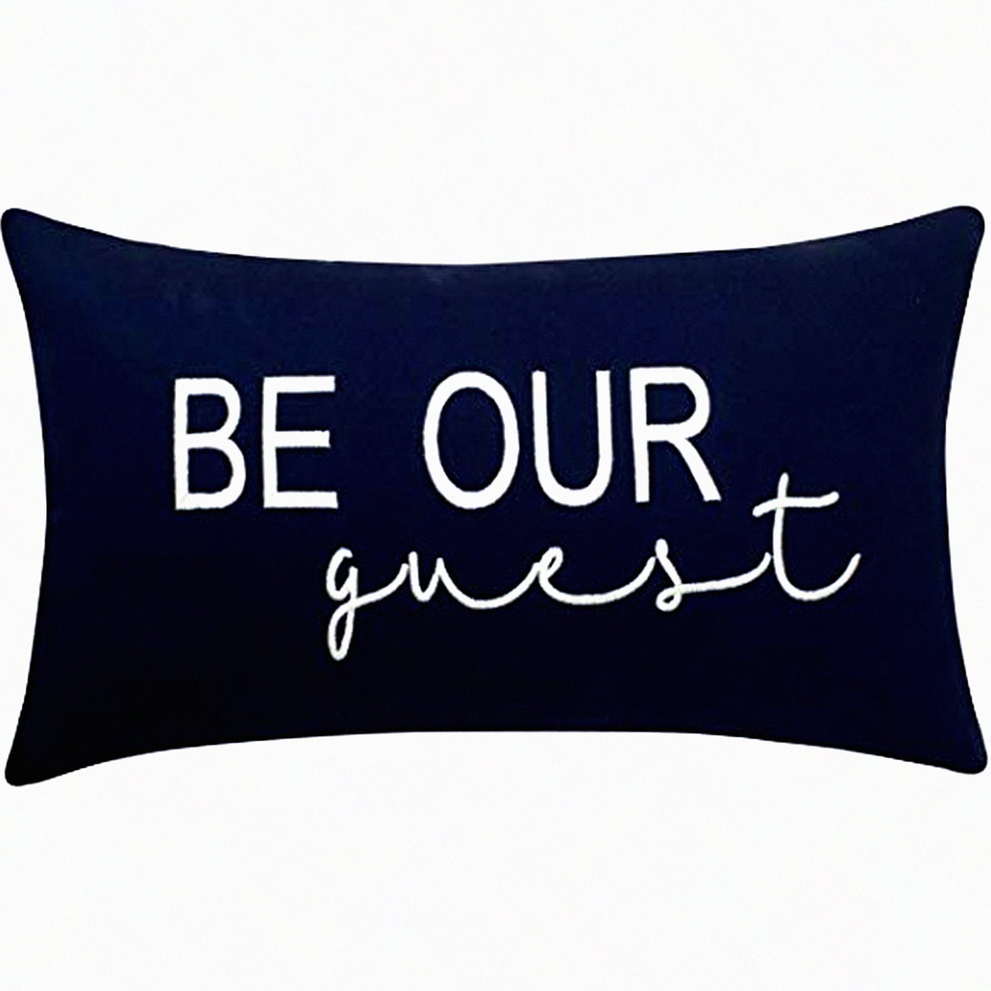 Navy Blue Entryway Guestroom Lumbar Pillow Cover - 12x20 Inches - Decorative Accent for Living Room - Embroidered Be Our Guest