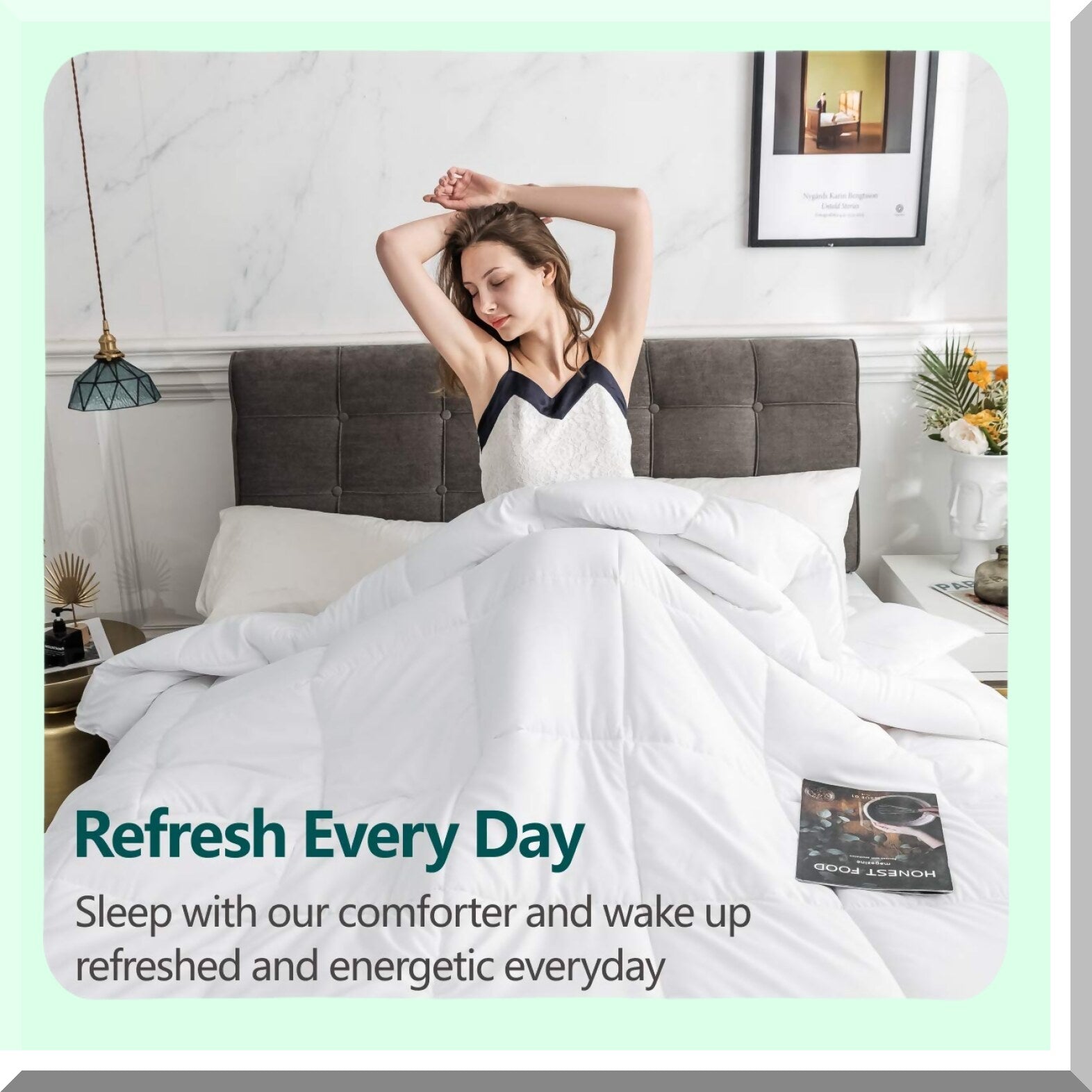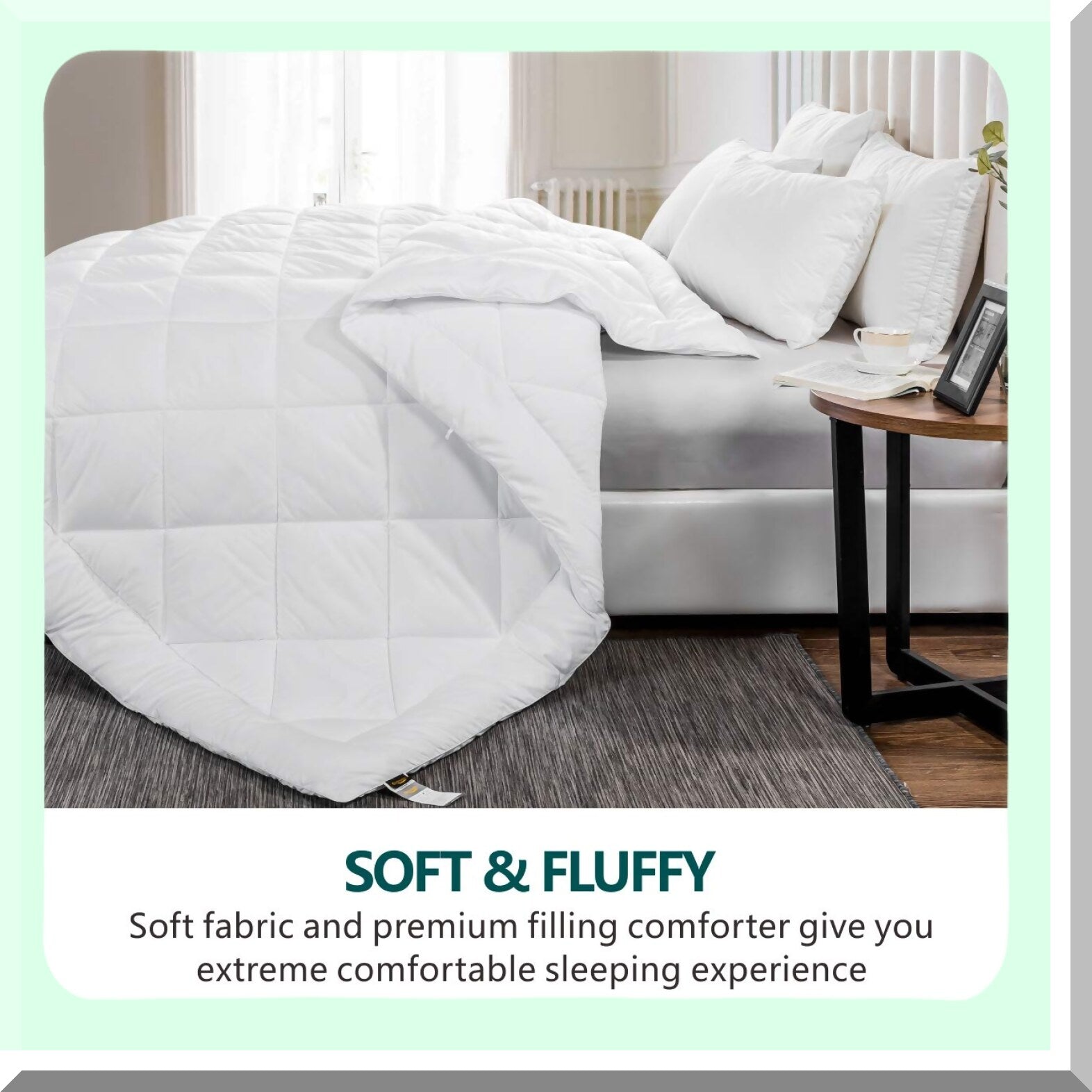 Breathable Diamond Stitched Queen Comforter - Lightweight Down Alternative Duvet Insert with Corner Tabs - Fluffy & Machine Washable - White 88"x92"