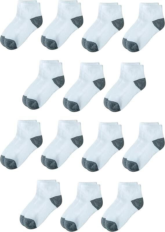 A set of 14 pairs of cotton ankle socks designed for both boys and girls. These socks are suitable for kids and toddlers, providing comfortable and breathable wear. Made from soft cotton material, they help keep little feet cozy throughout the day. The ankle length offers a good balance of coverage and freedom of movement. Ideal for everyday use, these socks are easy to put on and take off, making dressing simpler. The neutral design and colors make them versatile for various outfits. Durable and gentle on sensitive skin, they are a practical addition to any child's wardrobe.