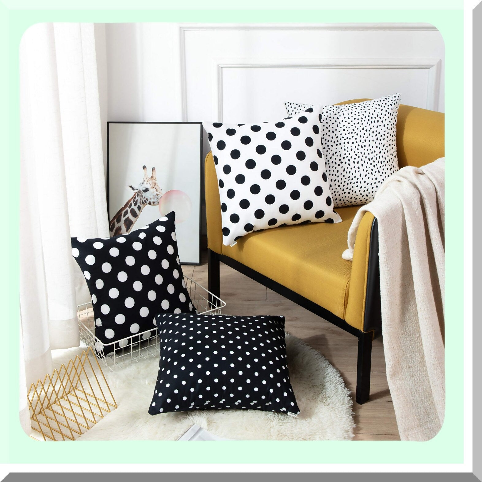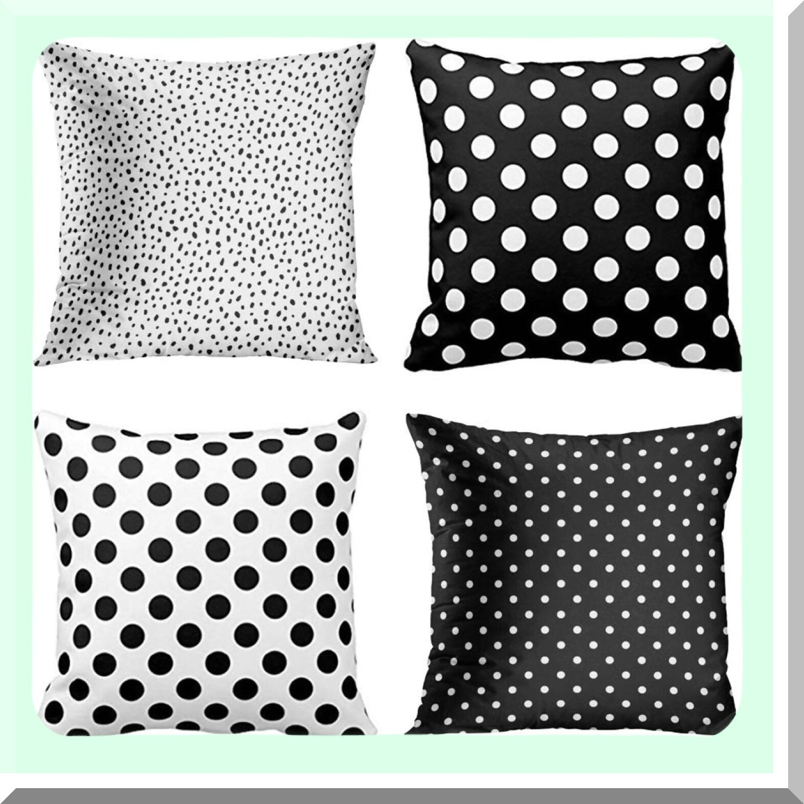 Polka Dot Abstract Decor Pillow Covers - Set of 4 Black & White Spot Structure Square 18x18 Inches - Home Decorative Pillowcases