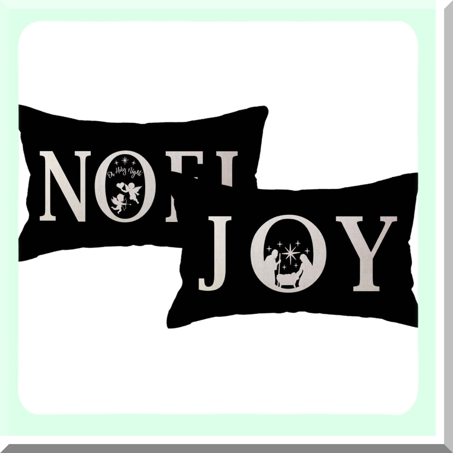 Holy Night Winter Joy Pillow Covers - Set of 2 - Christmas Cushion Cases for Couch/Sofa - Black Holiday Decor - Jesus Noel Pillowcases