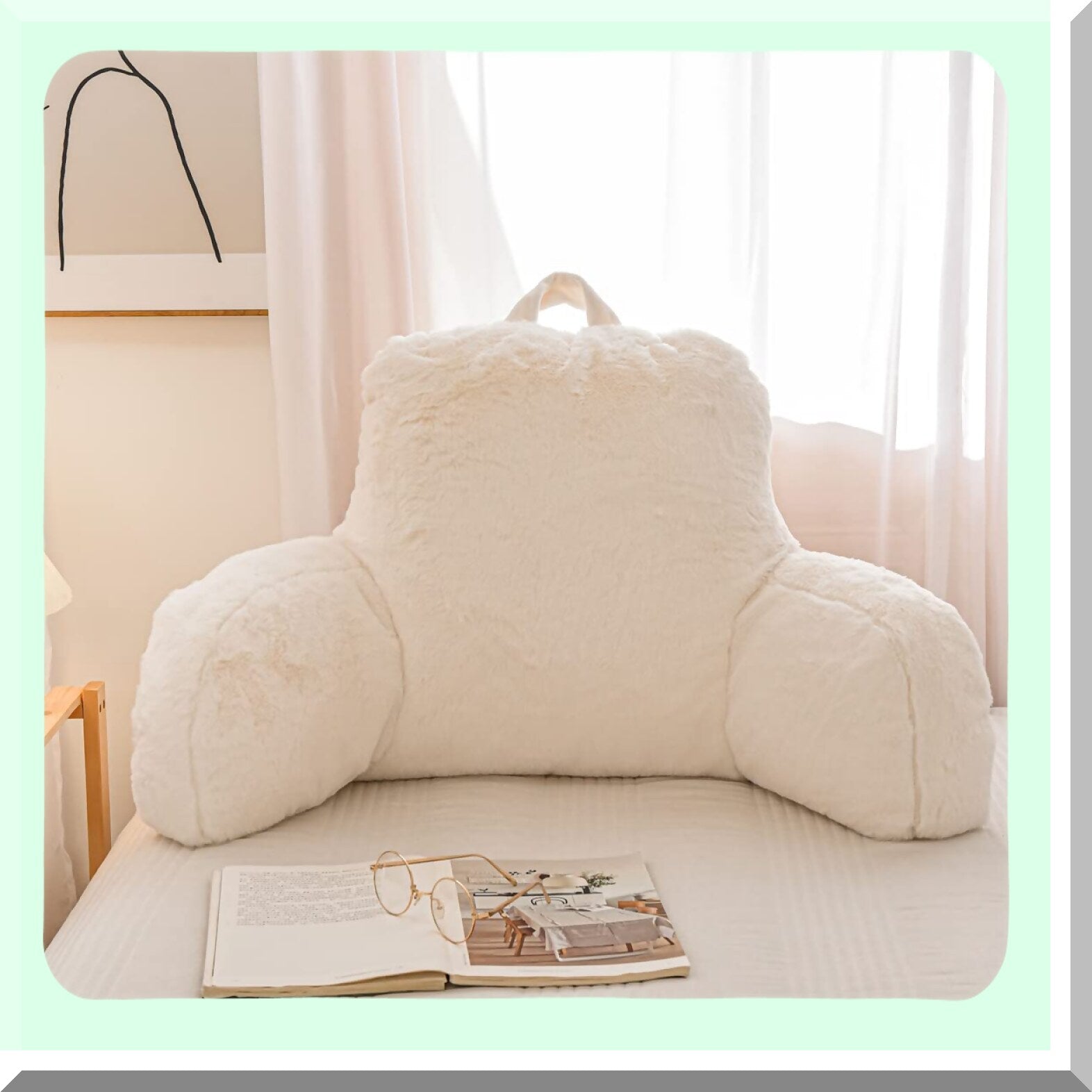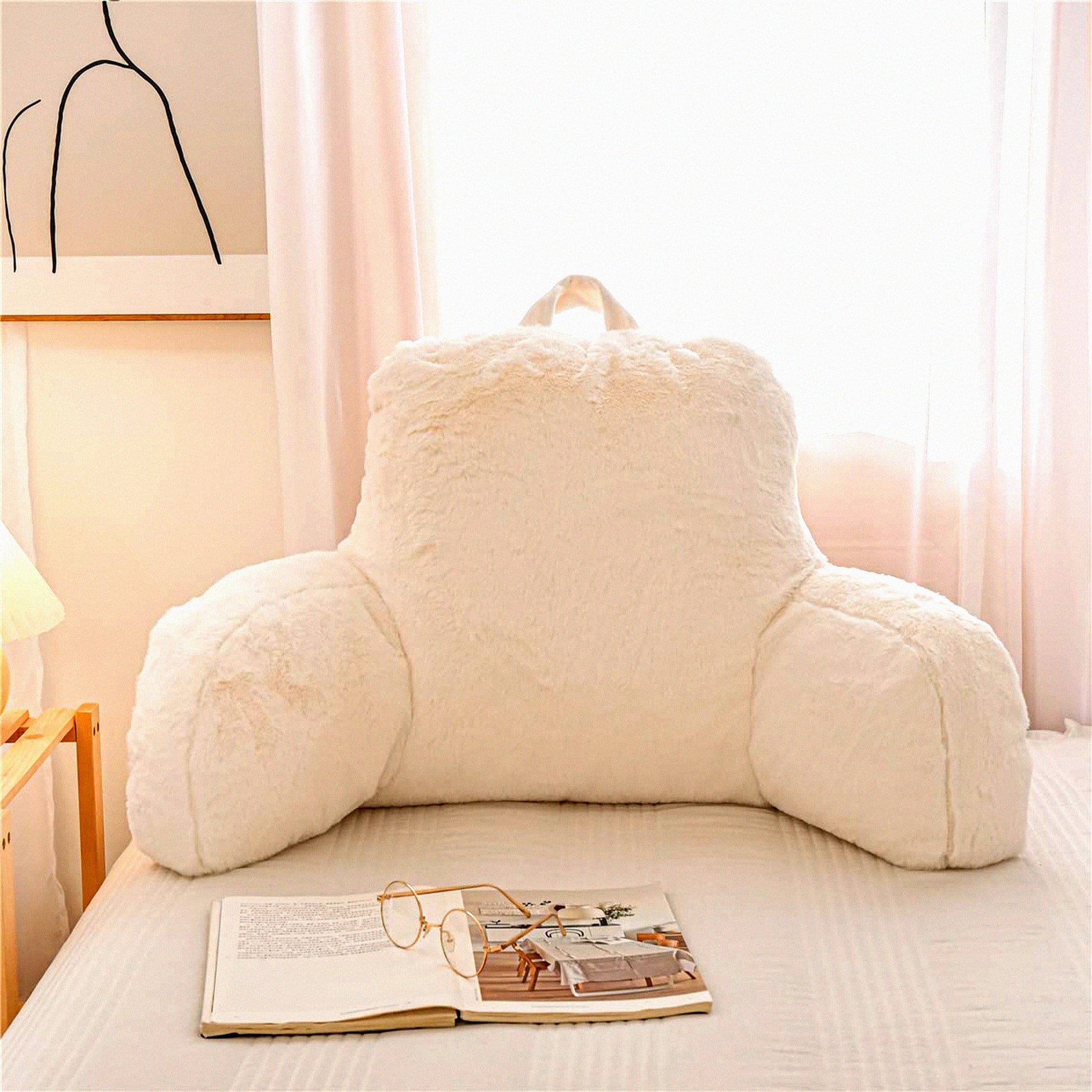 CozyRest Arm Support Reading Pillow - Large Bed Rest Pillow with Wrist Support, Arm Rests, and Back Support for Kids - Ideal for Lounging, Reading, Working on Laptop, Watching TV - White, Large