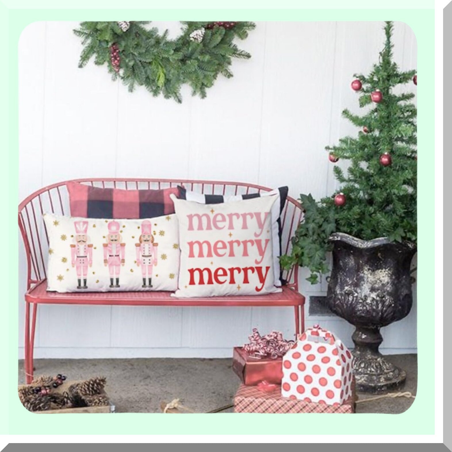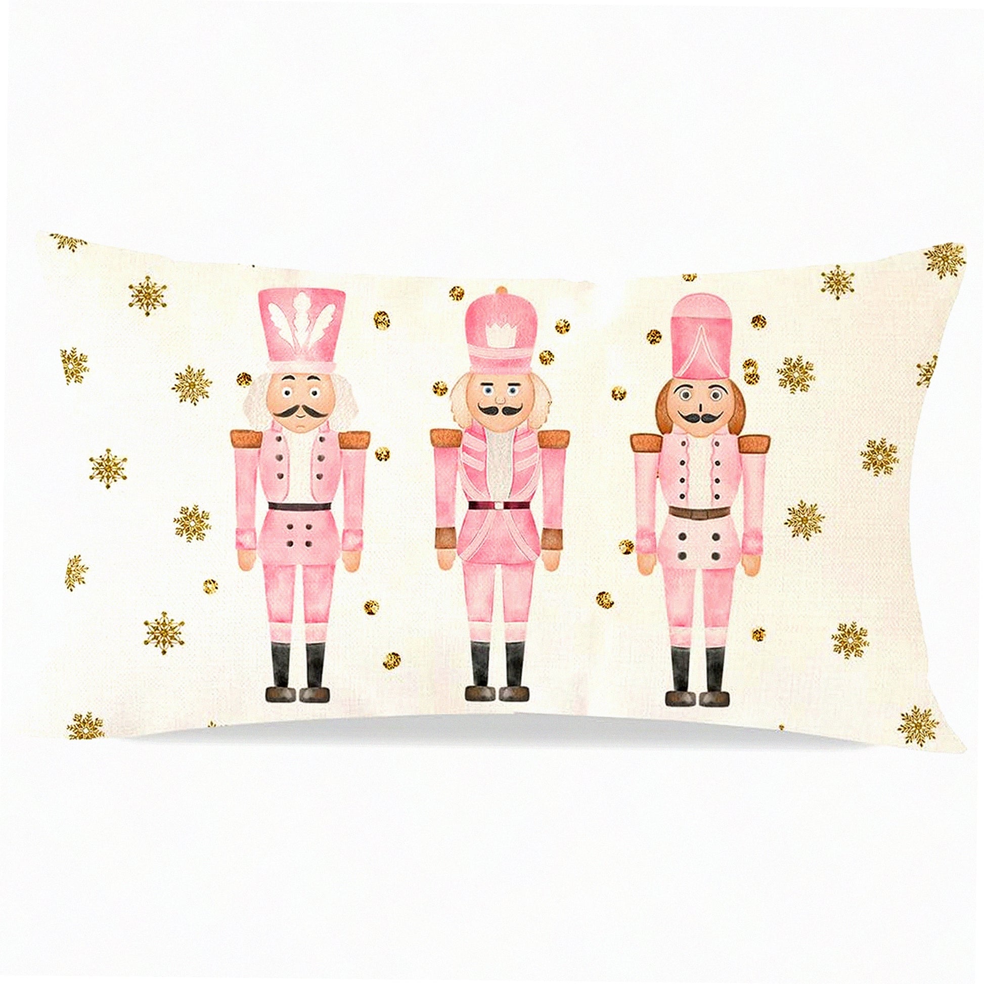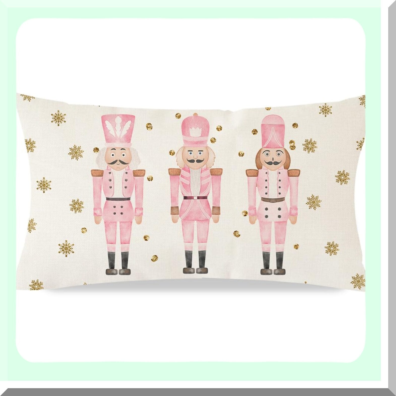 Winter Farmhouse Lumbar Pillow Covers - Pink Nutcracker Decorative Throw Cases for Couch Living Room. Modern Holiday Decor 12x20.