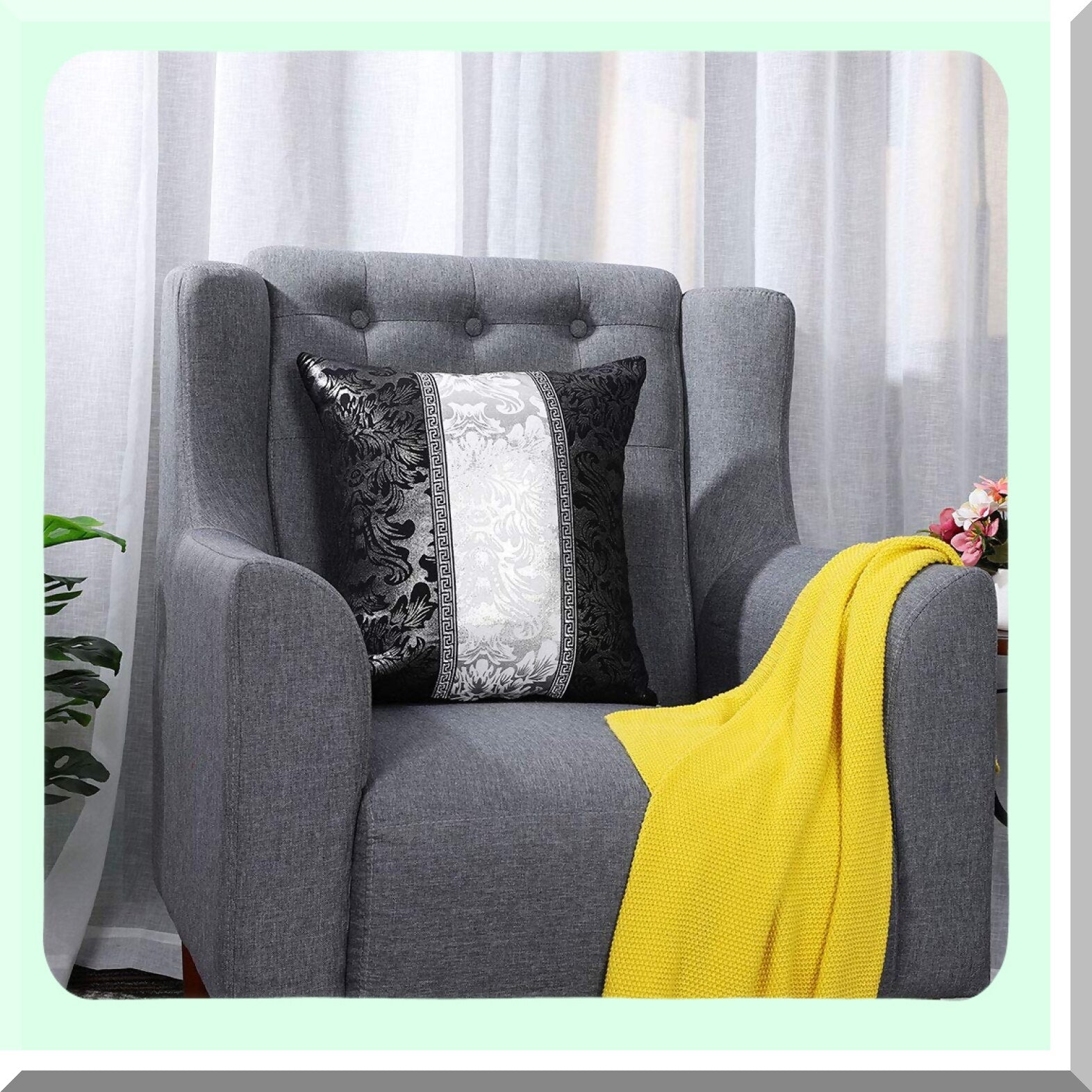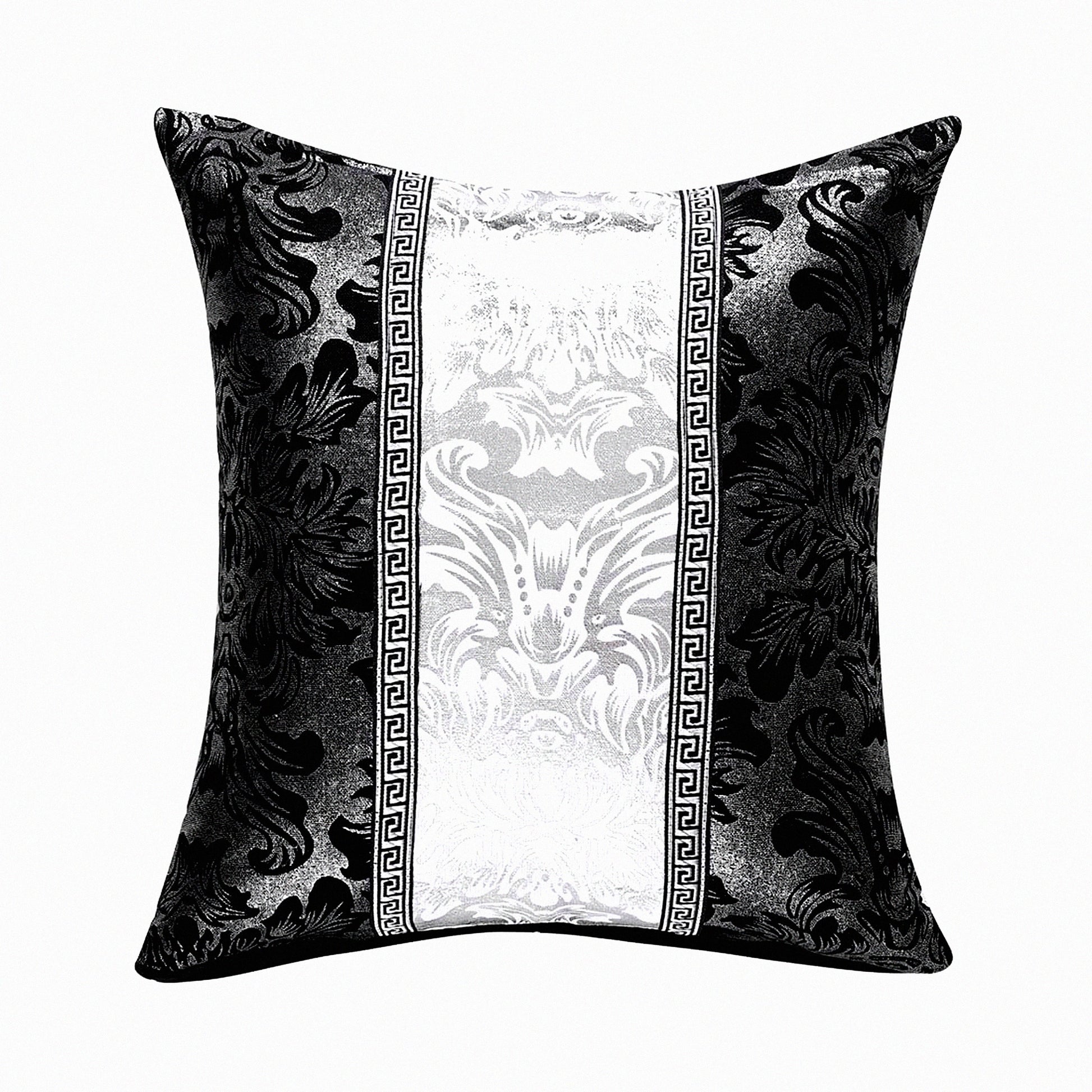 Vintage Floral Contrast Throw Pillow Cover - Home Decor Cushion Case for Couch Sofa - Black Silver Bolster Shell 18" x 18"