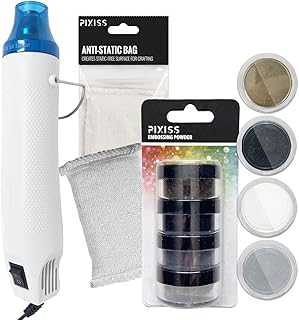 This heat tool is designed for various craft projects, including embossing, candle making, and shrink wrapping. It features a lightweight, easy-to-handle design with adjustable temperature settings for precise control. The kit includes four embossing powders to add color and texture to your projects, along with an anti-static embossing pad to prevent unwanted static and improve results. The compact size makes it suitable for detailed work and quick touch-ups. Ideal for artists and hobbyists, this tool helps achieve professional-looking finishes on a variety of craft surfaces.