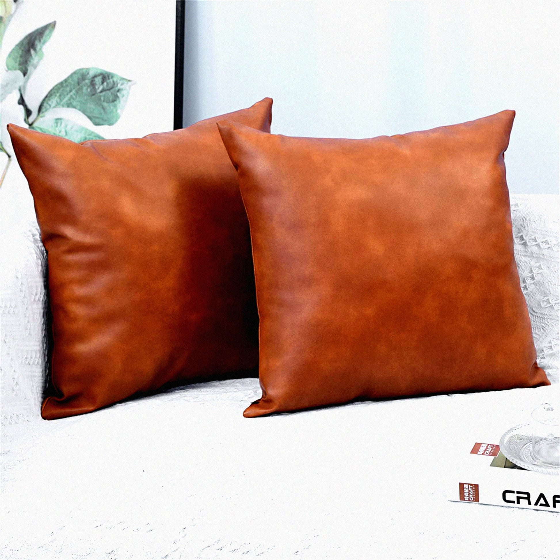 Rustic Chic Leather Pillowcase Set - 24x24 Inch Farmhouse Accent Cushion Covers for Living Room & Bedroom Sofa - 2 Pack Home Decor Accessory