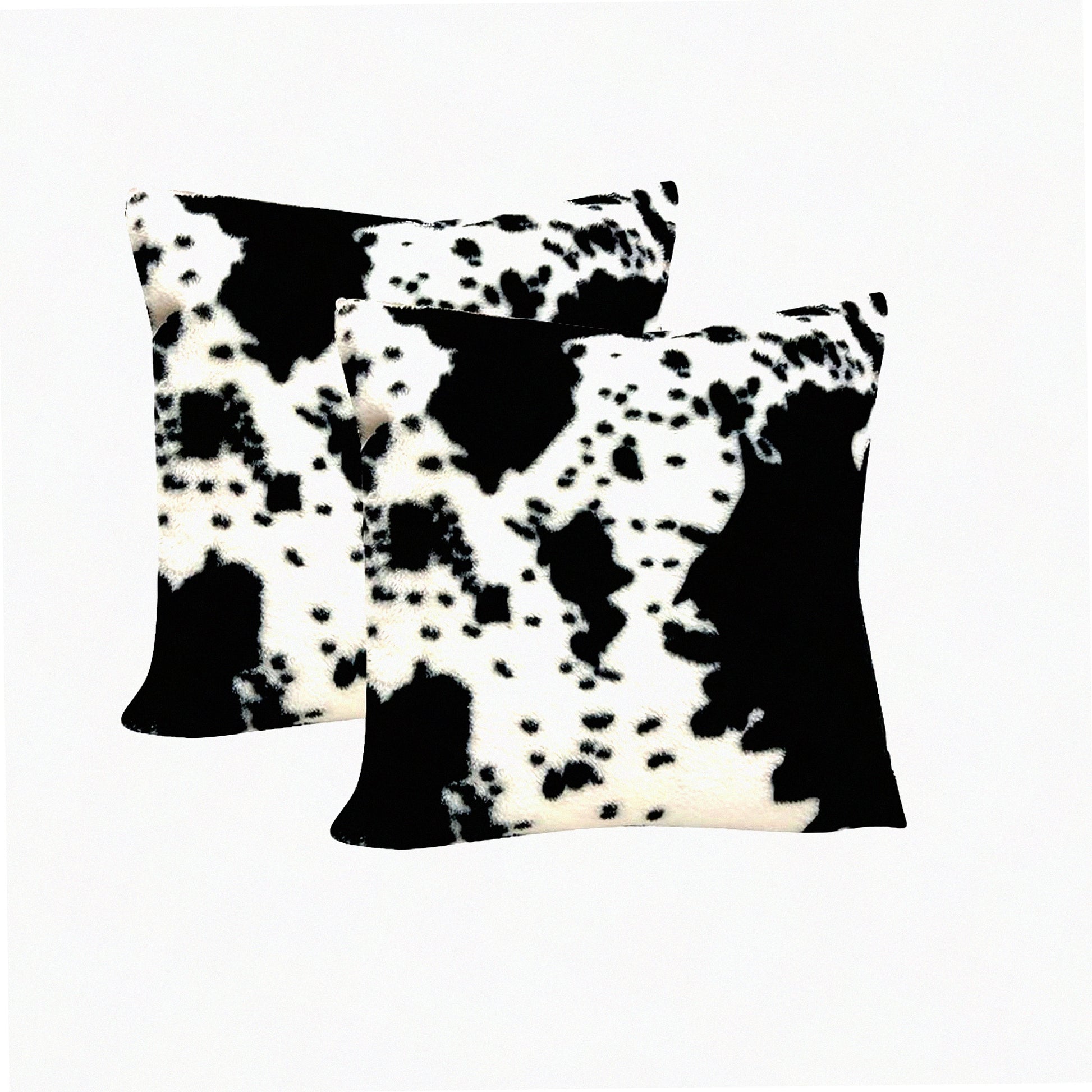 This pack of 2 throw pillow covers offers practical benefits such as added comfort and style to your couch, bed, or sofa. The soft, cozy fleece material ensures a comfortable touch, enhancing relaxation. The black and white cowhide pattern printed on both sides adds a farmhouse accent, making it a versatile decor piece. Measuring 22x22 inches, these covers fit standard-sized pillows, making them easy to use and replace.