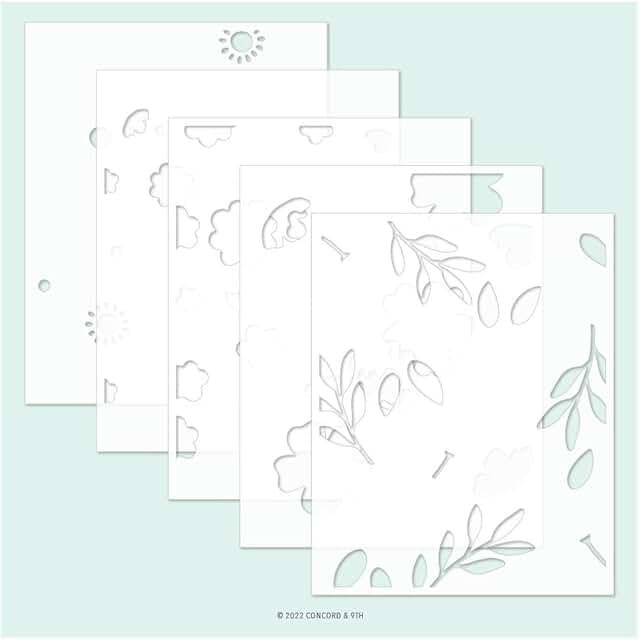 This set includes five stencils, each measuring 4.75 by 6 inches, featuring various flower designs. Perfect for adding decorative touches to cards for birthdays, thinking of you messages, Valentine’s Day, or other paper crafting projects. The stencils are suitable for creating detailed floral patterns on different surfaces, allowing for personalized and creative designs. They are ideal for use with inks, paints, or other coloring mediums to enhance your handmade cards and craft projects.