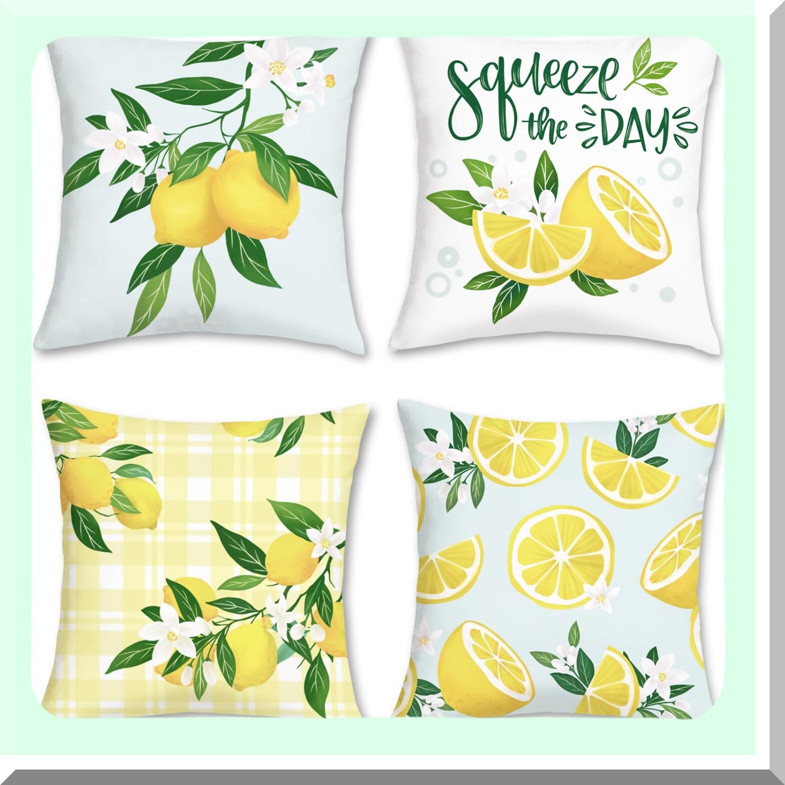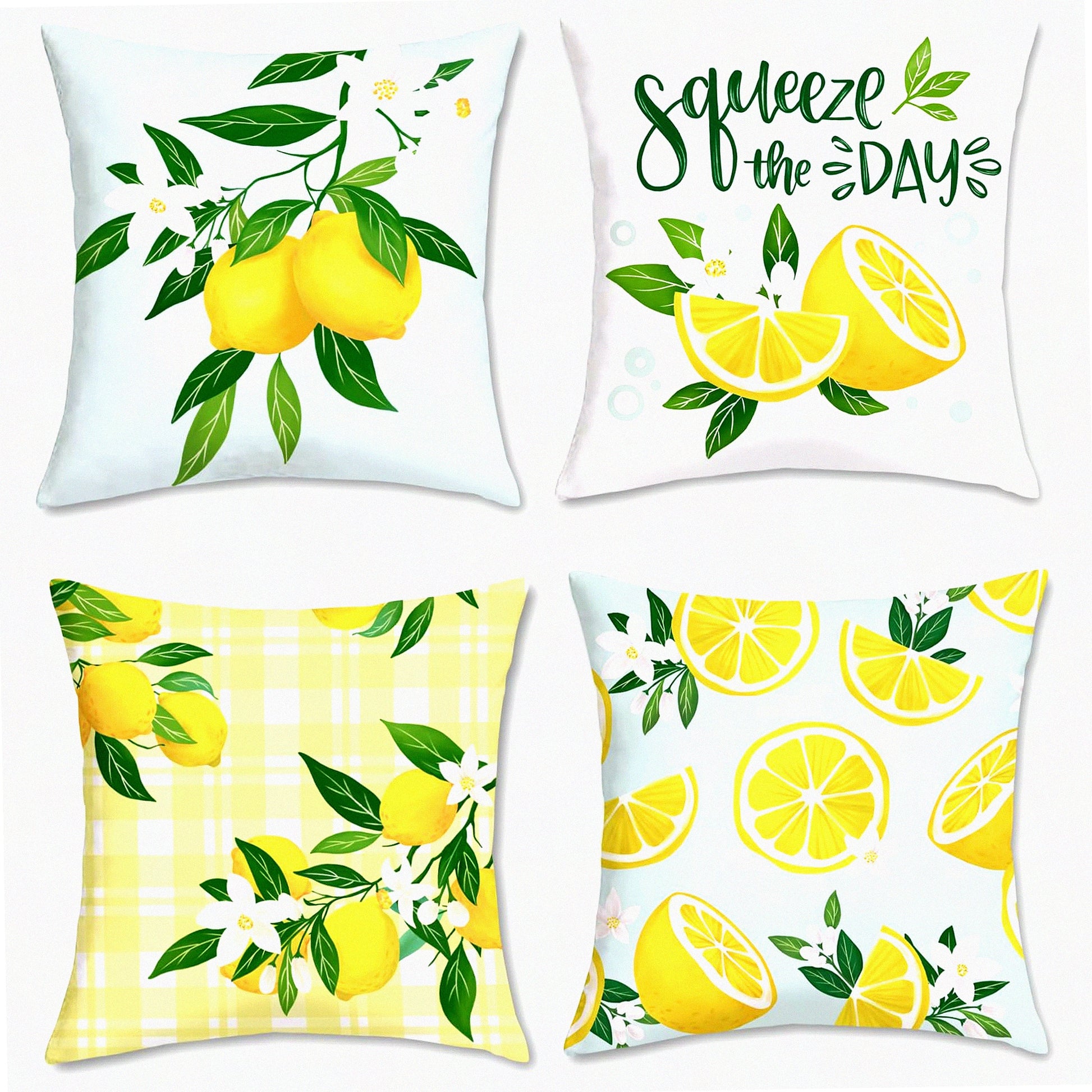 Summer Lemon Velvet Pillow Covers - Set of 4 Farmhouse Decorative Cushion Cases for Couch, Sofa, Patio & Garden Home Decor - 18 x 18 Inch Soft Fruit Theme