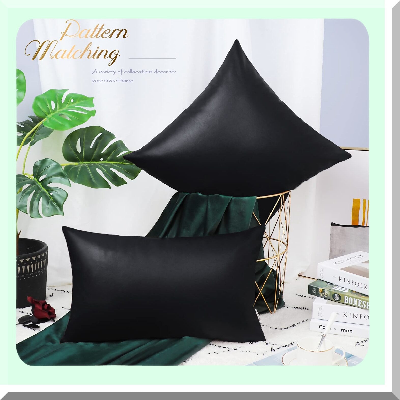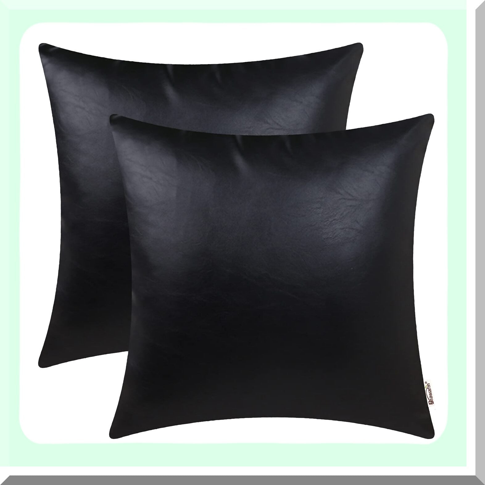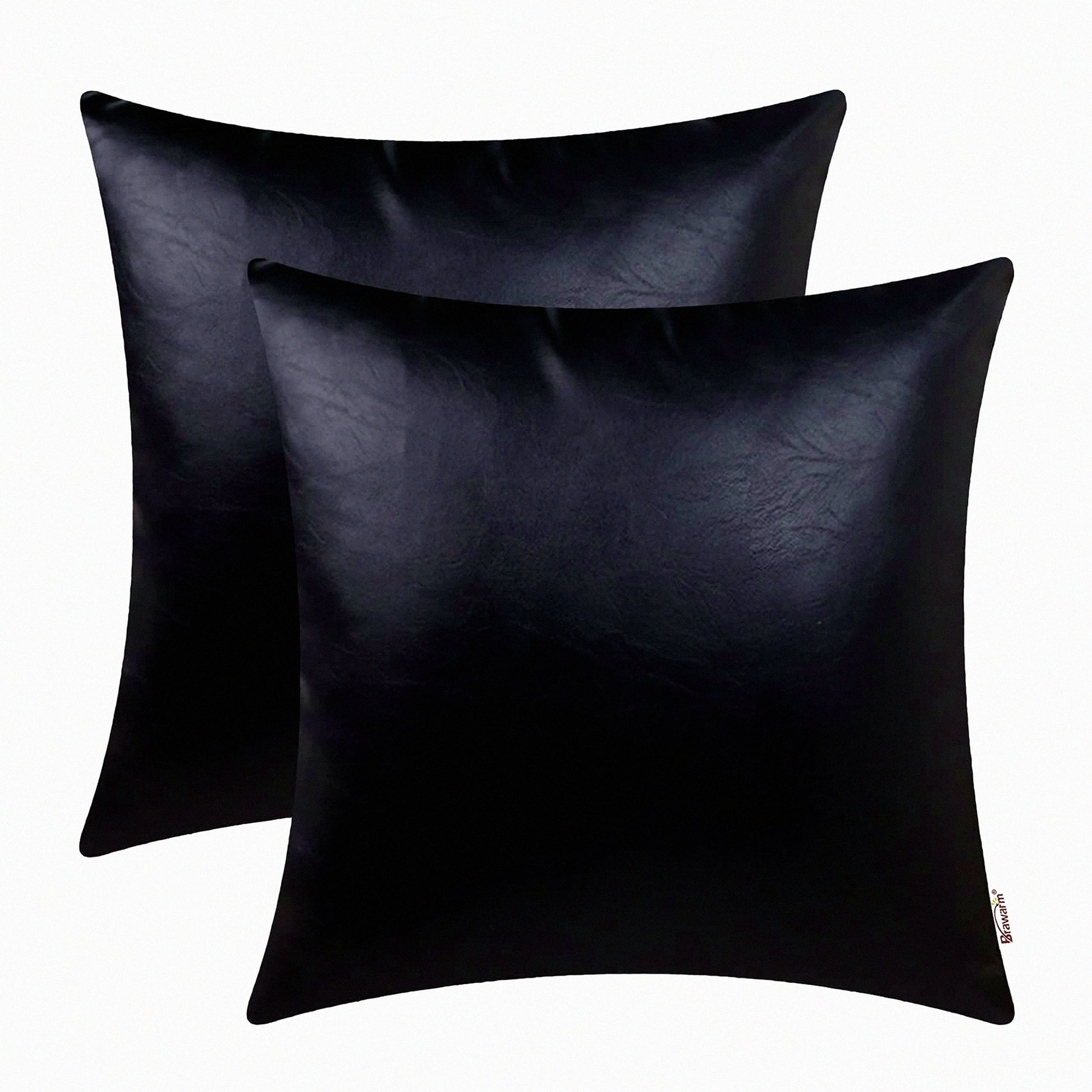 Black Leather Luxe Pillow Covers - Set of 2 | 18x18 Inch Solid Dyed Leather Pillowcases for Couch, Bed, Sofa, Garden - Home Decor Accent
