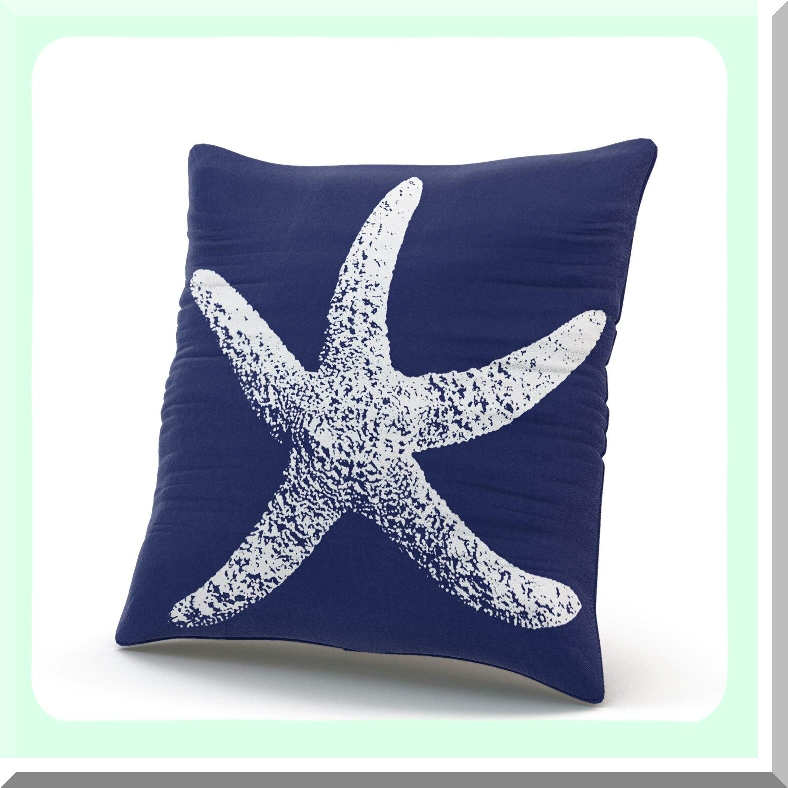 Starfish Dream Navy Blue White Pillowcase - 20X20 Inch Square Throw Cushion Cover - Double Sided Printed Home Decor - Coastal Beach Theme