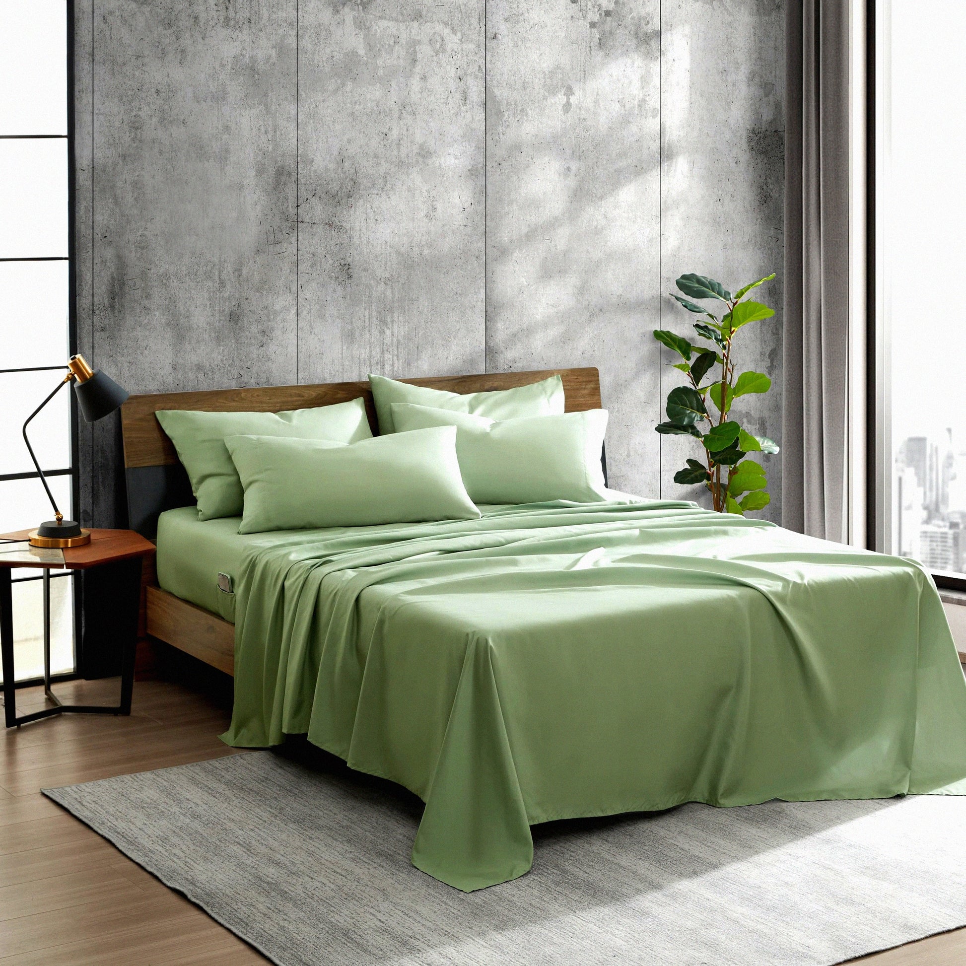 EcoCool Full Sheet Set - Soft Recycled Polyester Bedding, Wrinkle-Resistant & Cooling Finish - Solid Green - 6-Piece Bed Set