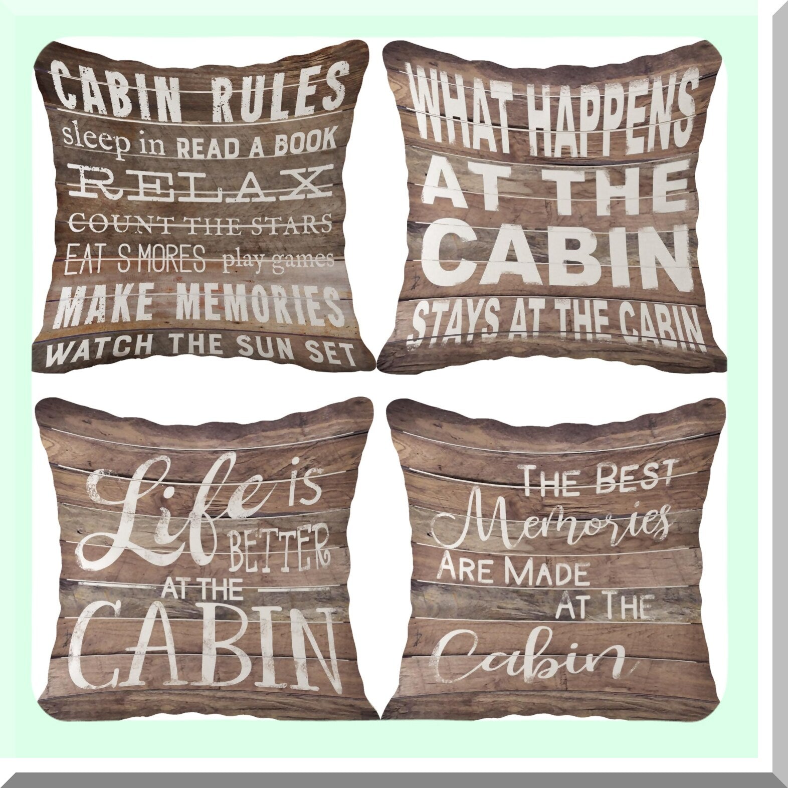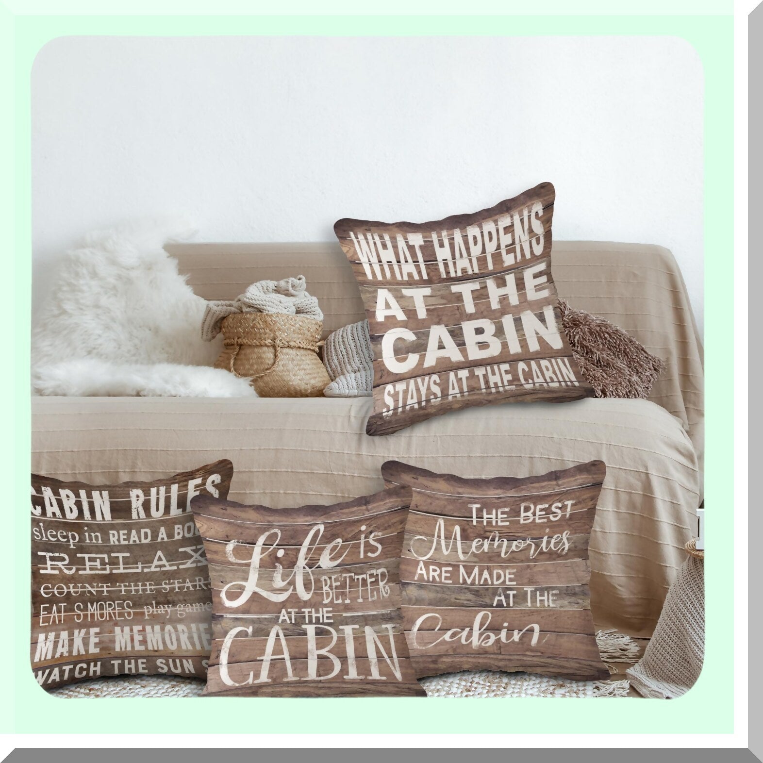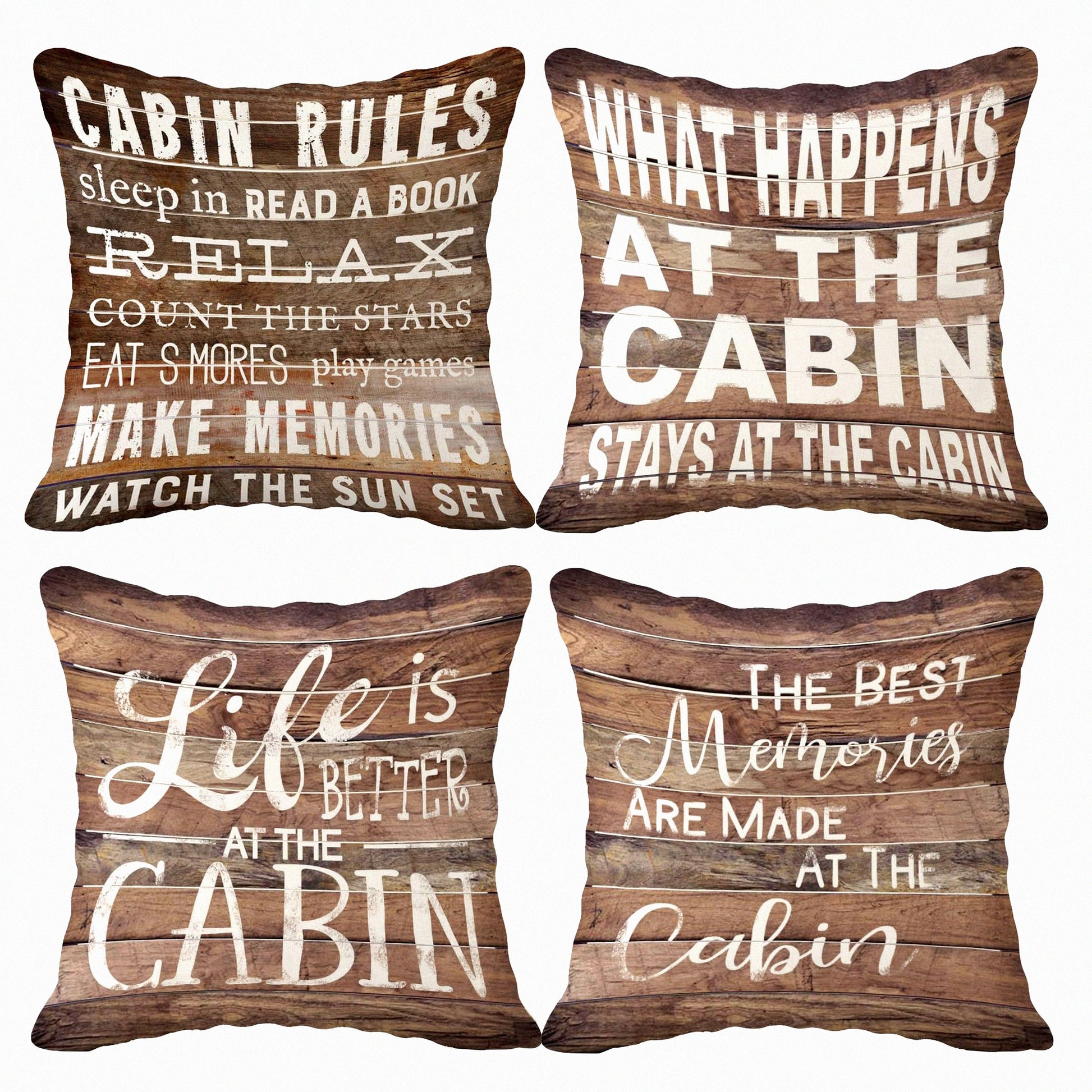 Vintage Cabin Wood Grain Throw Pillow Set - Outdoor Porch Decor - Cabin Rules Decor - Sofa Couch Bed Pillows Cover - 18x18 Inch, Set of 4