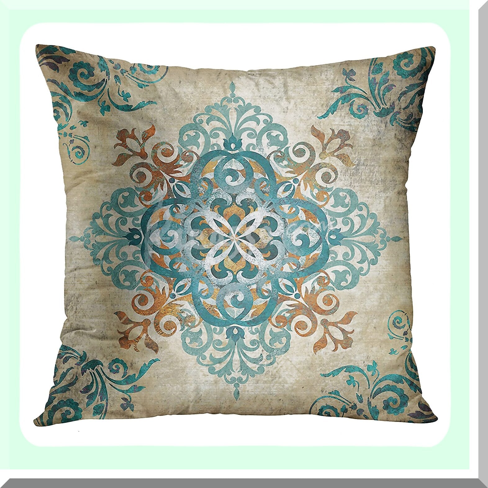 Boho Leafy Vintage Pillowcase Set - Brown Green Teal Grey Abstract Floral Decor - Home Decorative Covers - Standard Square 18x18 Inches
