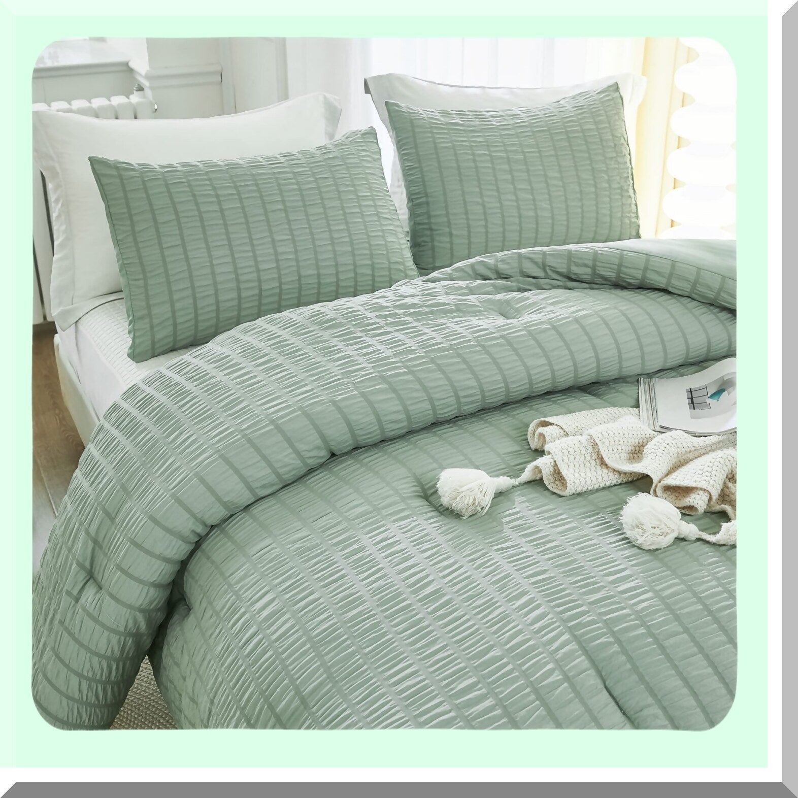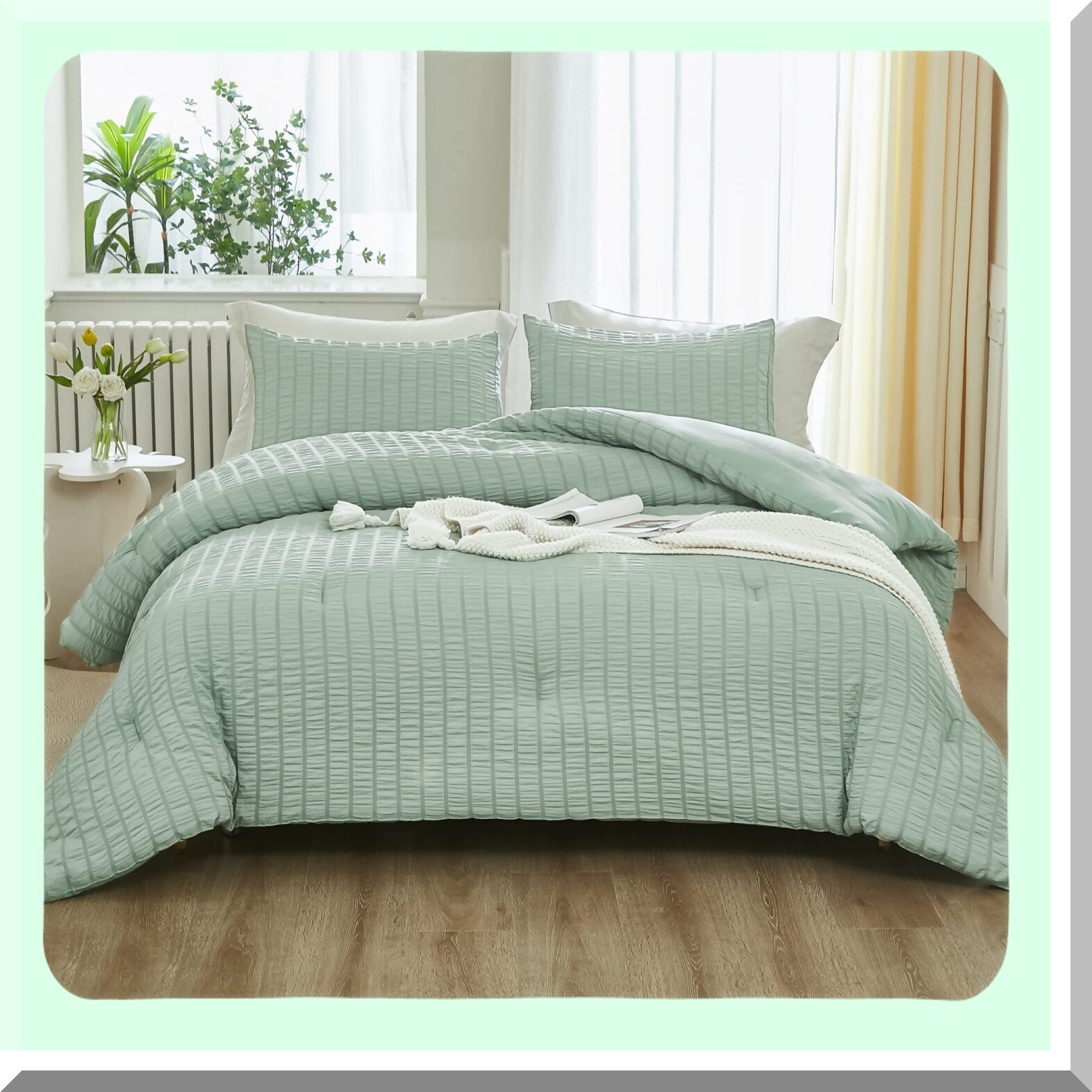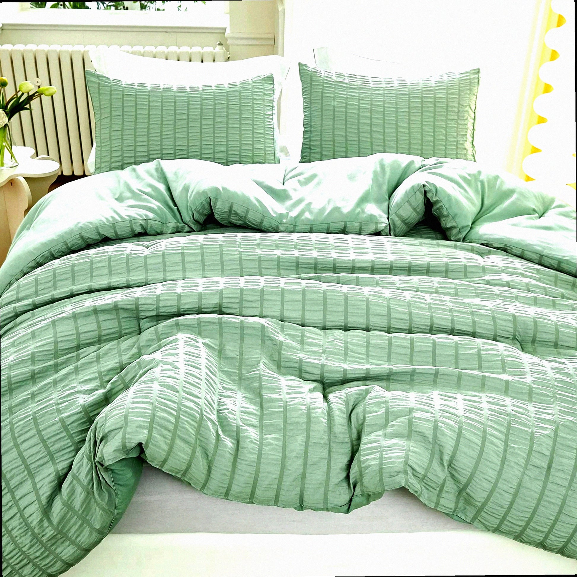 Sage Green Seersucker Comforter Set - California Size Lightweight Bedding with Soft Aesthetic Design, 3-Piece Summer Comforter Set (104x96In)