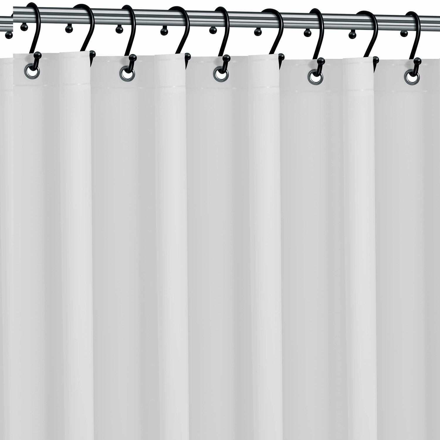 This premium shower curtain liner measures 72"W x 72"H and is made from 6-gauge PEVA, a PVC-free, eco-friendly, and durable material. Designed to keep water off the bathroom floor, it also resists moisture stain build-up, thanks to its quick-drying surface that prevents mold and fungi growth. Reinforced rust-proof grommets ensure long-lasting use, resisting wear from frequent tugs and pulls. The weighted bottom hem, embedded with magnets, helps keep the curtain in place and prevents billowing. Its heavy-duty construction allows for multiple uses, making it a reusable alternative to single-use liners. Easy to clean, this liner is machine washable, maintaining its quality over time. Suitable for use as a standalone shower curtain, it combines functionality with eco-conscious design, offering a reliable, moisture-resistant barrier that lasts longer and reduces waste. Perfect for maintaining a clean, dry bathroom environment with minimal effort.