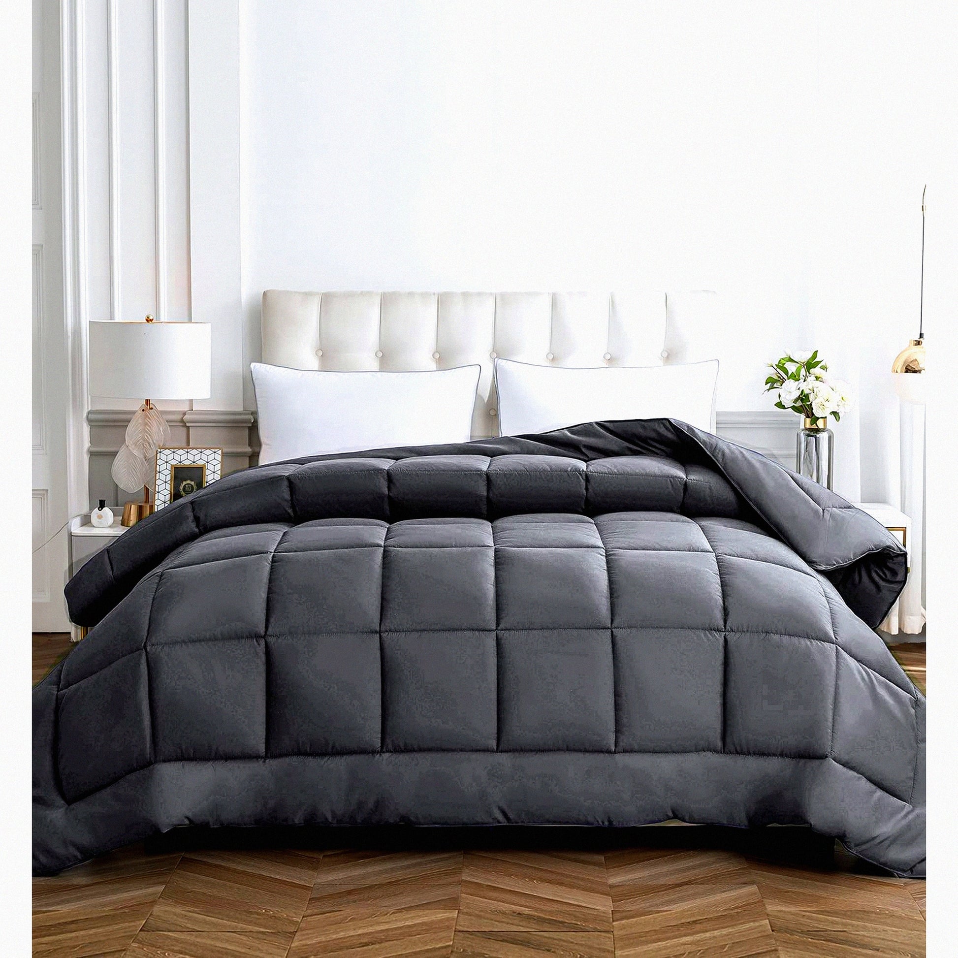 Diamond Stitched All Season Full Comforter - Breathable Gray Duvet Insert - Reversible Comforter with Corner Tabs - 82x86 inches