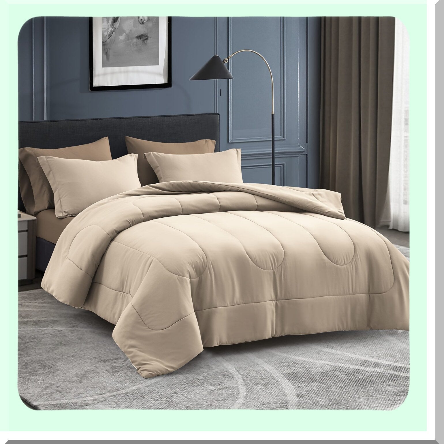 Luxury Comfort 7-Piece Bedding Set - Plush Down Alternative Comforter, Sheets, Pillowcases, Shams - Reversible Duvet Insert - Beige Bed Set
