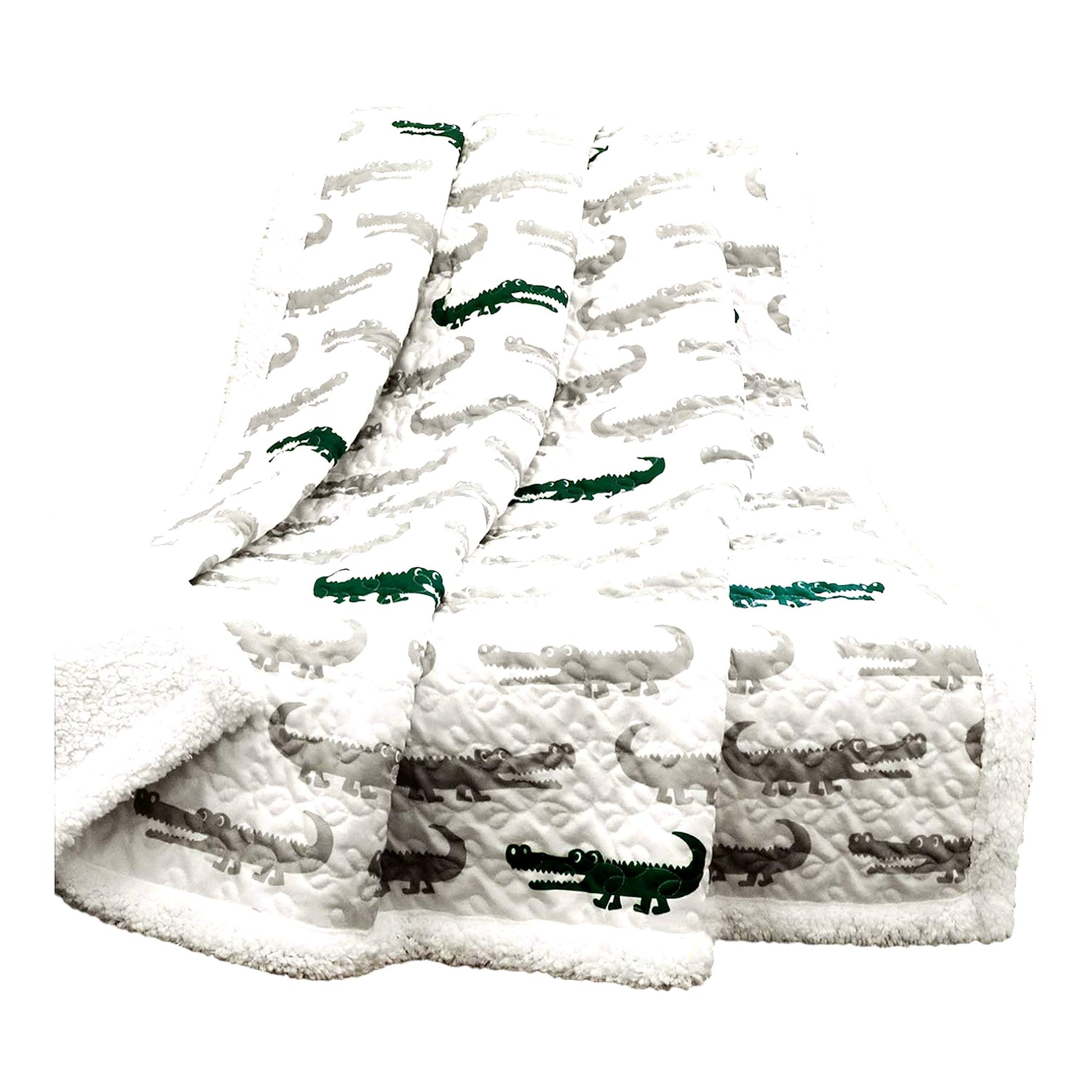 CozyCroc Sherpa Throw Blanket, 60" x 50", Gray/Green"