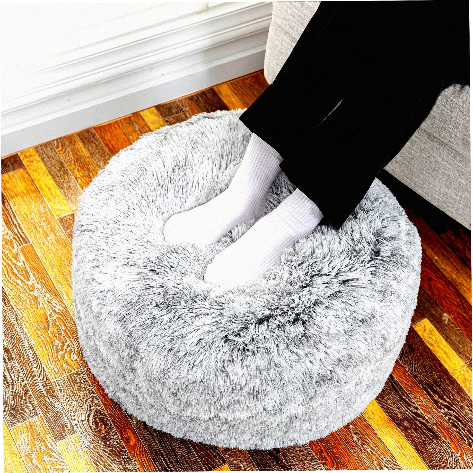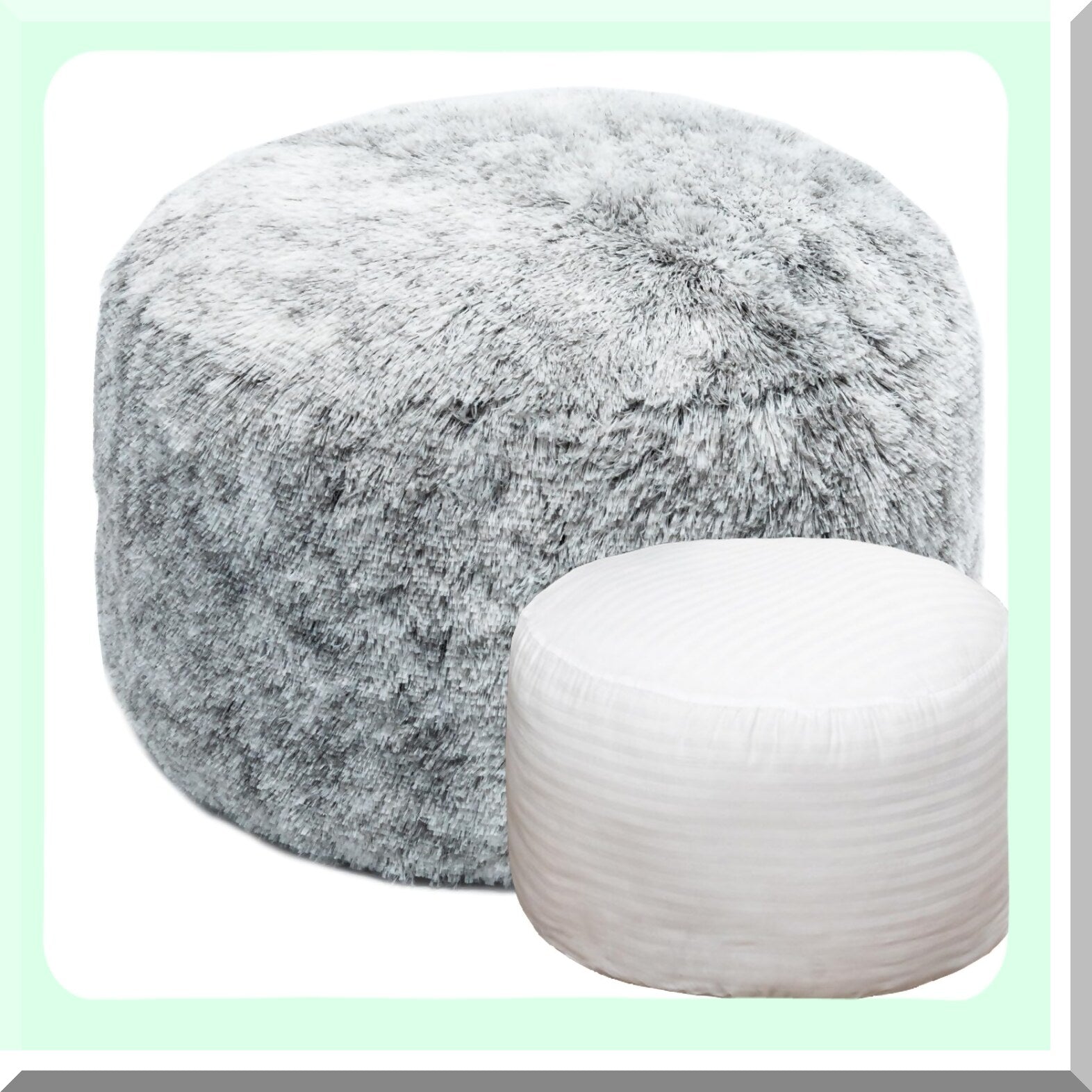 Snow Gray Round Pouf Ottoman - 20" Diameter x 12" Height Stuffed Foot Stool Chair for Living Room & Bedroom. Soft Floor Rest for Couch.