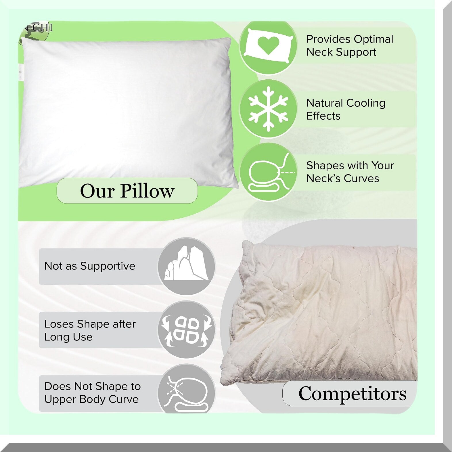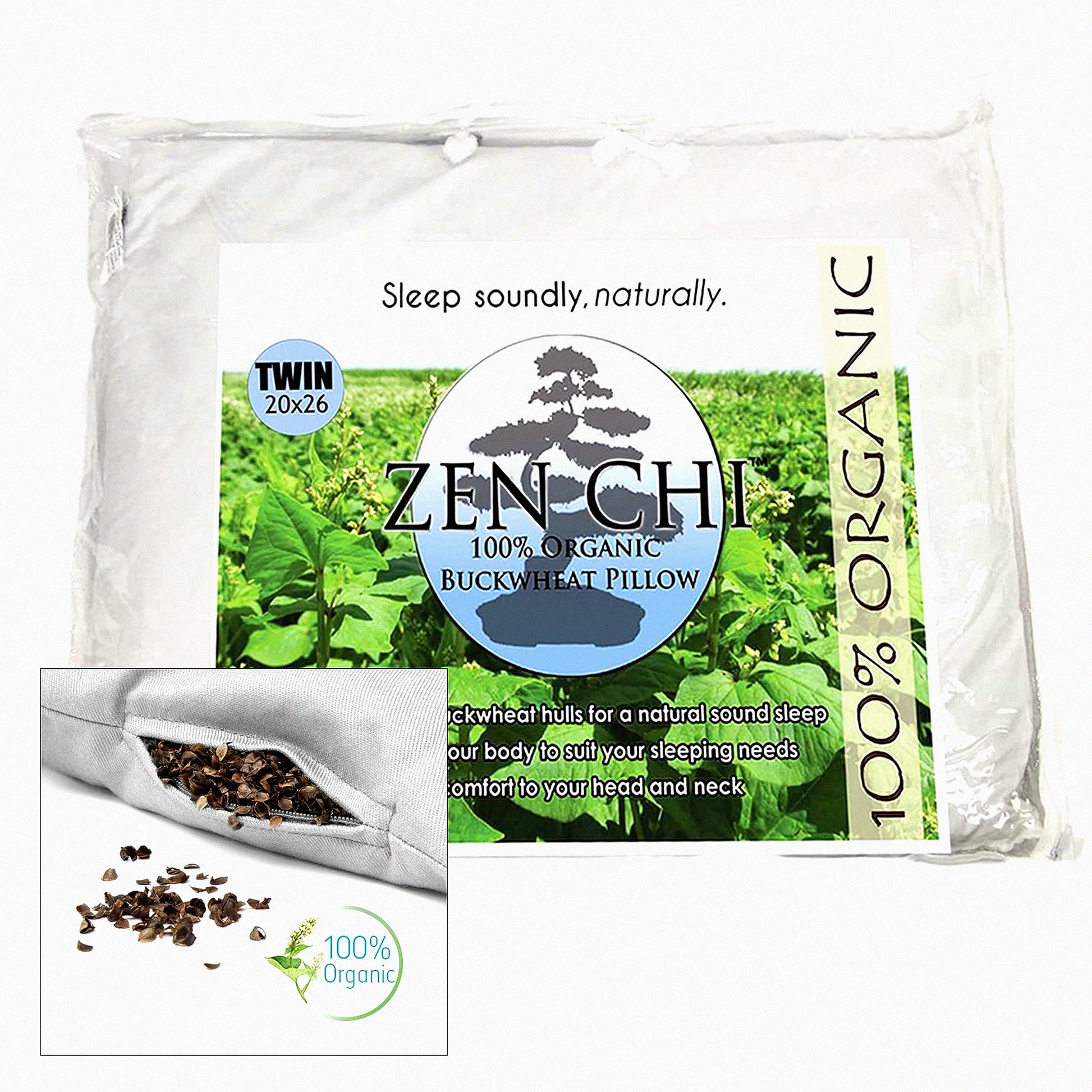 CoolSleep Contour Buckwheat Pillow - Twin Size (20"X26") with Natural Cooling Technology. All Cotton Cover for Comfortable Sleep, Adjusts to Neck and Head Contours.